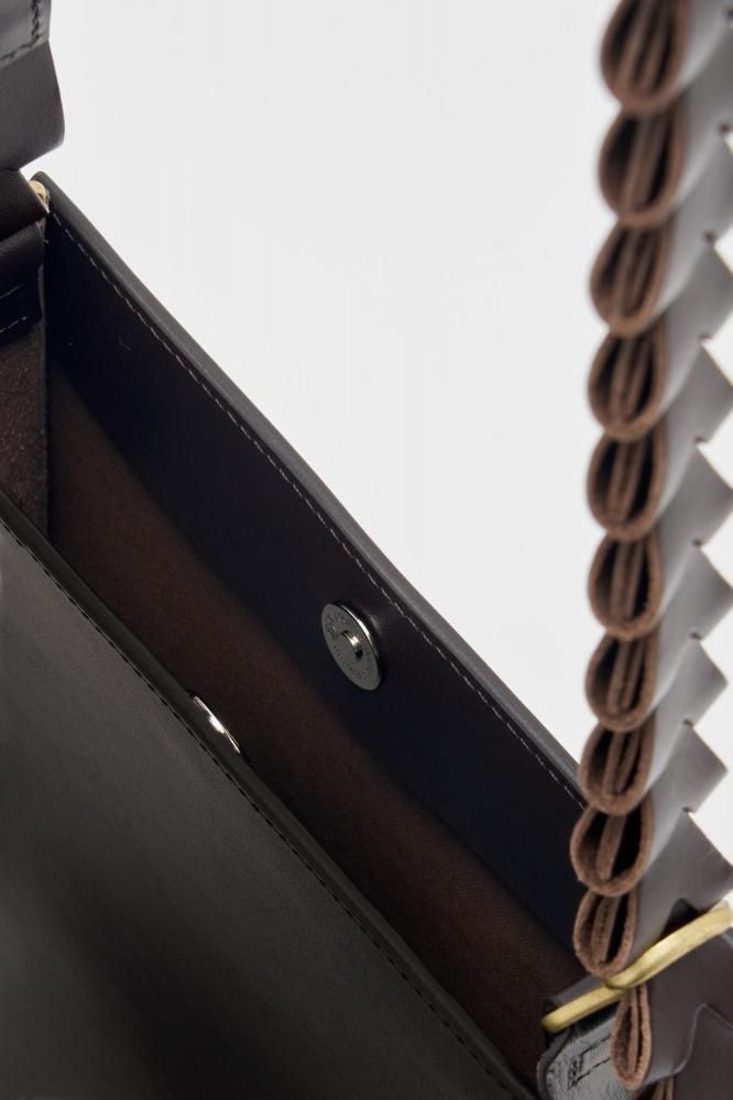 視覚的なアクセントとなるだけでなく、パーツの着脱によって長さの調整や、部分的なリペアが可能。また、レザーの端材を無駄なく活用することで、制作工程においてもサステナブルなアプローチを実現しています。