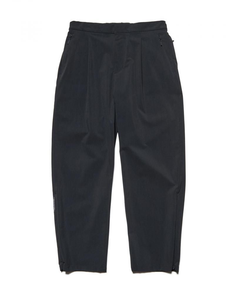 程よくテーパードが美しいリラックスフィットのタックスラックス。裾のジップ開閉によりシルエットと通気性のアジャストが可能。シリーズ標準のパッカプル仕様。 ビジネスカジュアル、リフレッシュシーン双方で着用できる万能ボトムスです。
