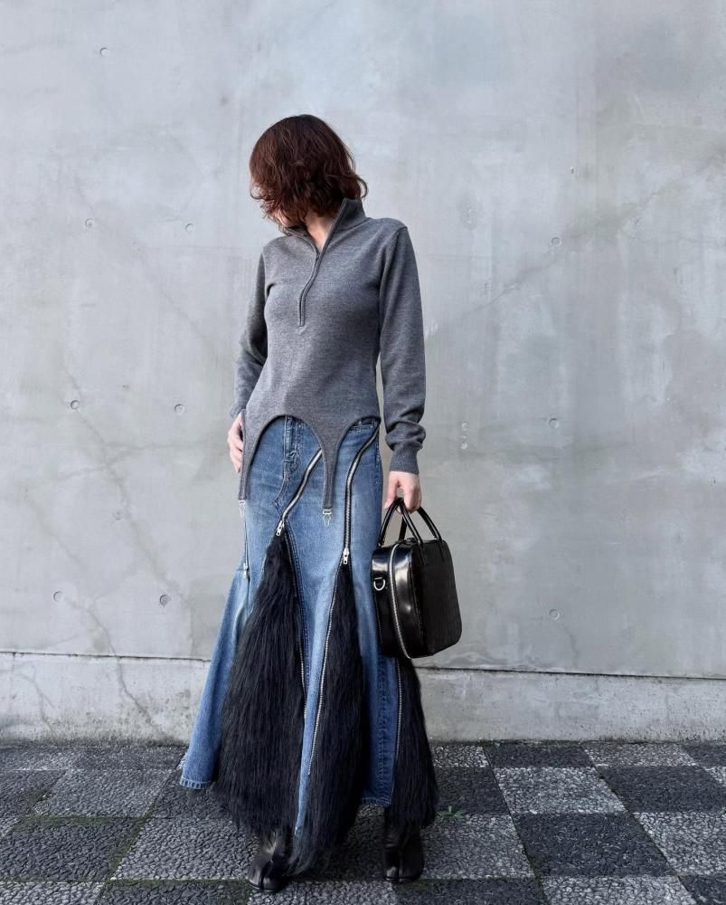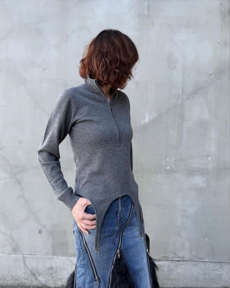 裾を大胆にラウンドさせたデザインが目を惹きます。