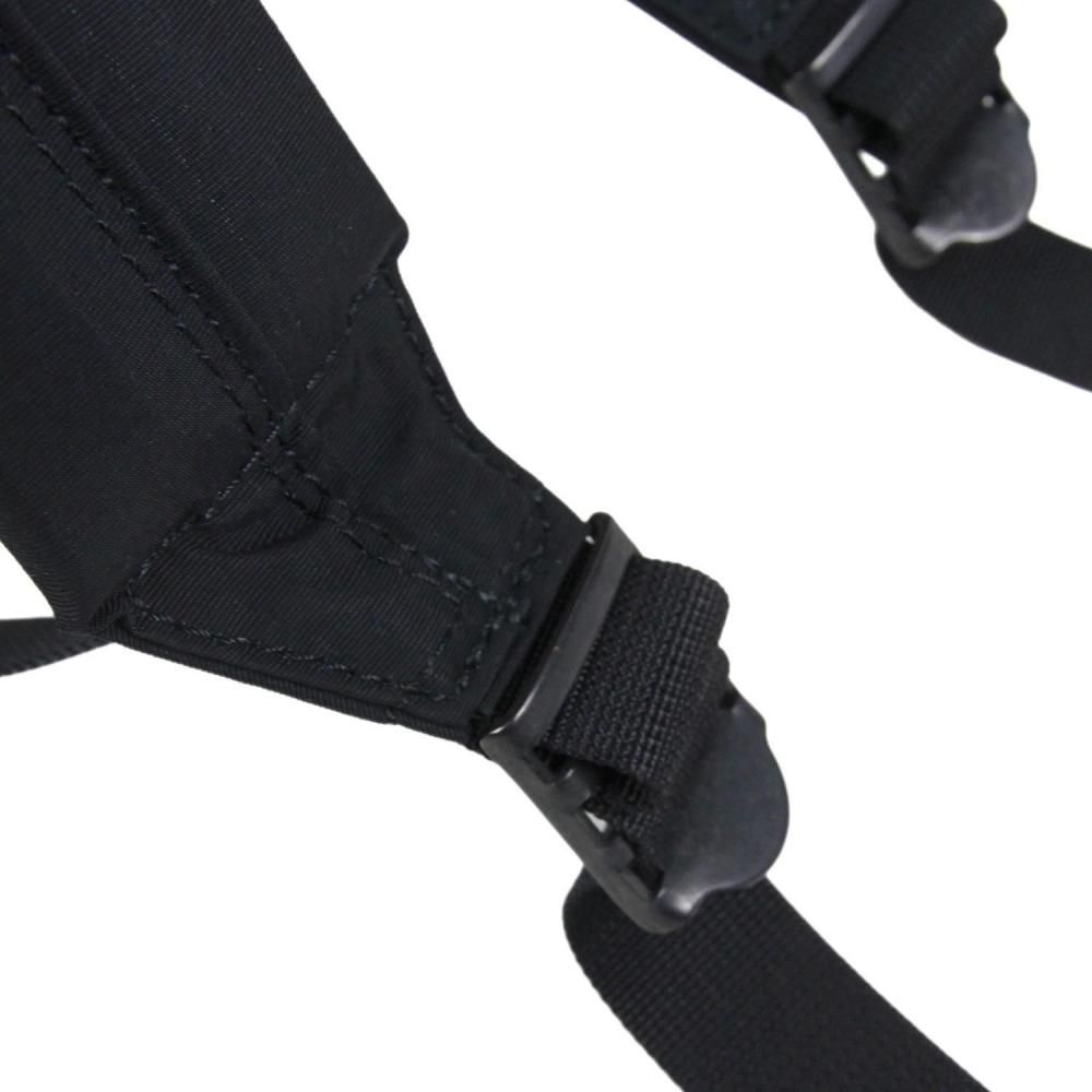 ボトムのレザーストラップは脱いだアウターやシャツを丸めて収納できるようにデザインした簡易的なストラップです。