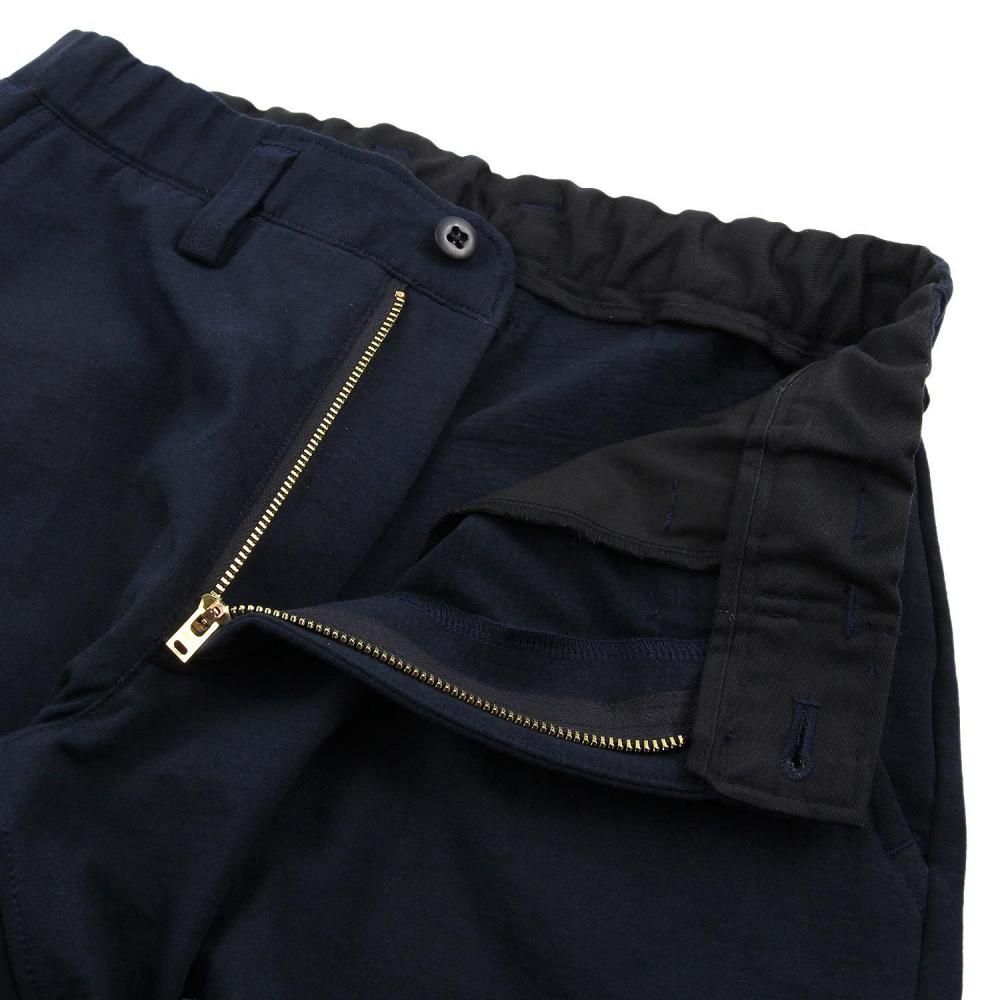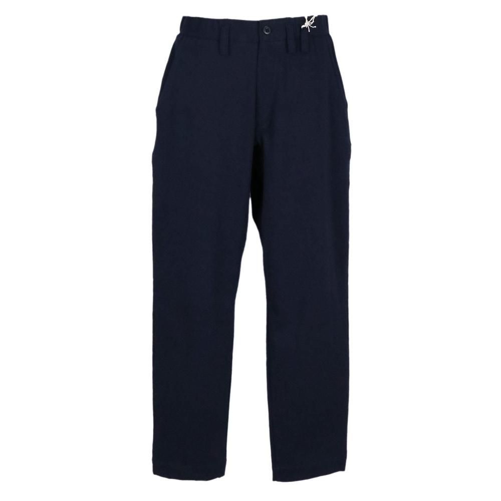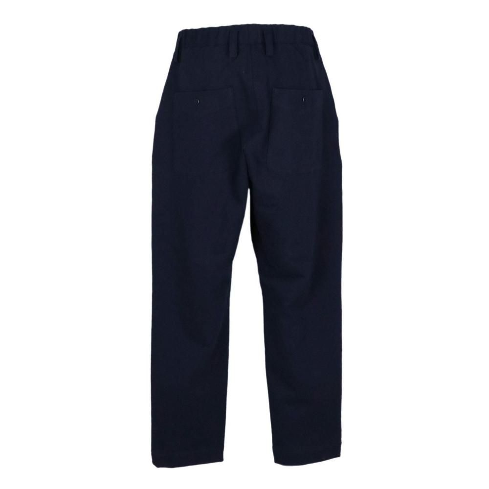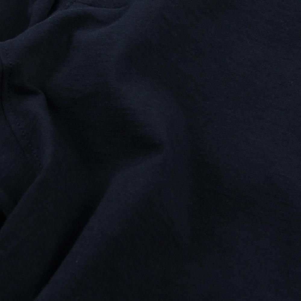 伸縮性の高いポリウレタン糸を綿糸でカバーリングした糸を高密度で編立てた素材を使用した新品番ペグトップトラウザーです。肌触りは綿特有の柔らかさがありますが、高密度で編み立てることでハリ感が出て季節を問わず着用できます。度目をしっかり詰めることで膝の抜けがほとんどなく型崩れも起きにくいのが特長です。またストレッチ天竺素材は着用時に窮屈感がなく、身体の動きに合わせて適度に伸縮しますので動きやすく、春から秋まで着用できます。汗をかいたり匂いが気になる季節でも家庭洗濯が可能です。