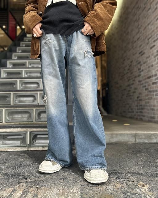 DIESELの特徴である破壊的な美学をミディアムブルーで表現したこのフィックスデニムは、オーガニックコットンで作られ、ダメージやリペア、エイジング加工が施されています。