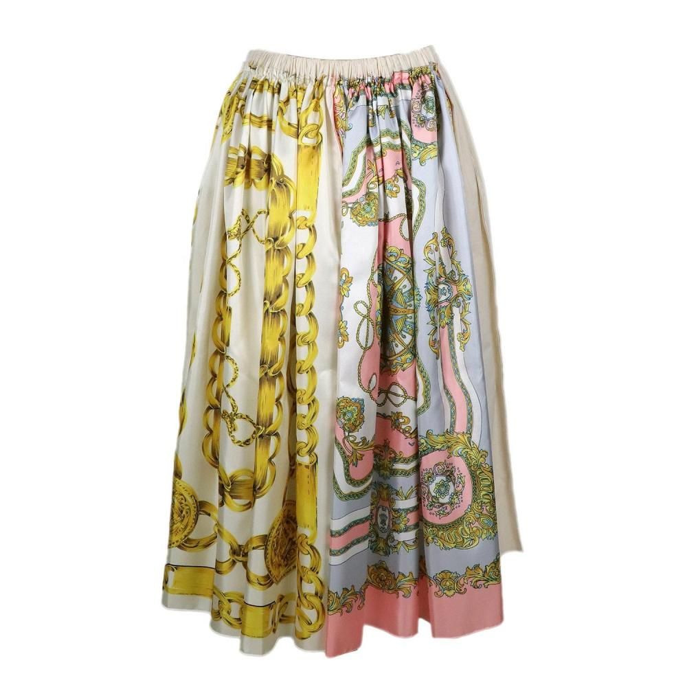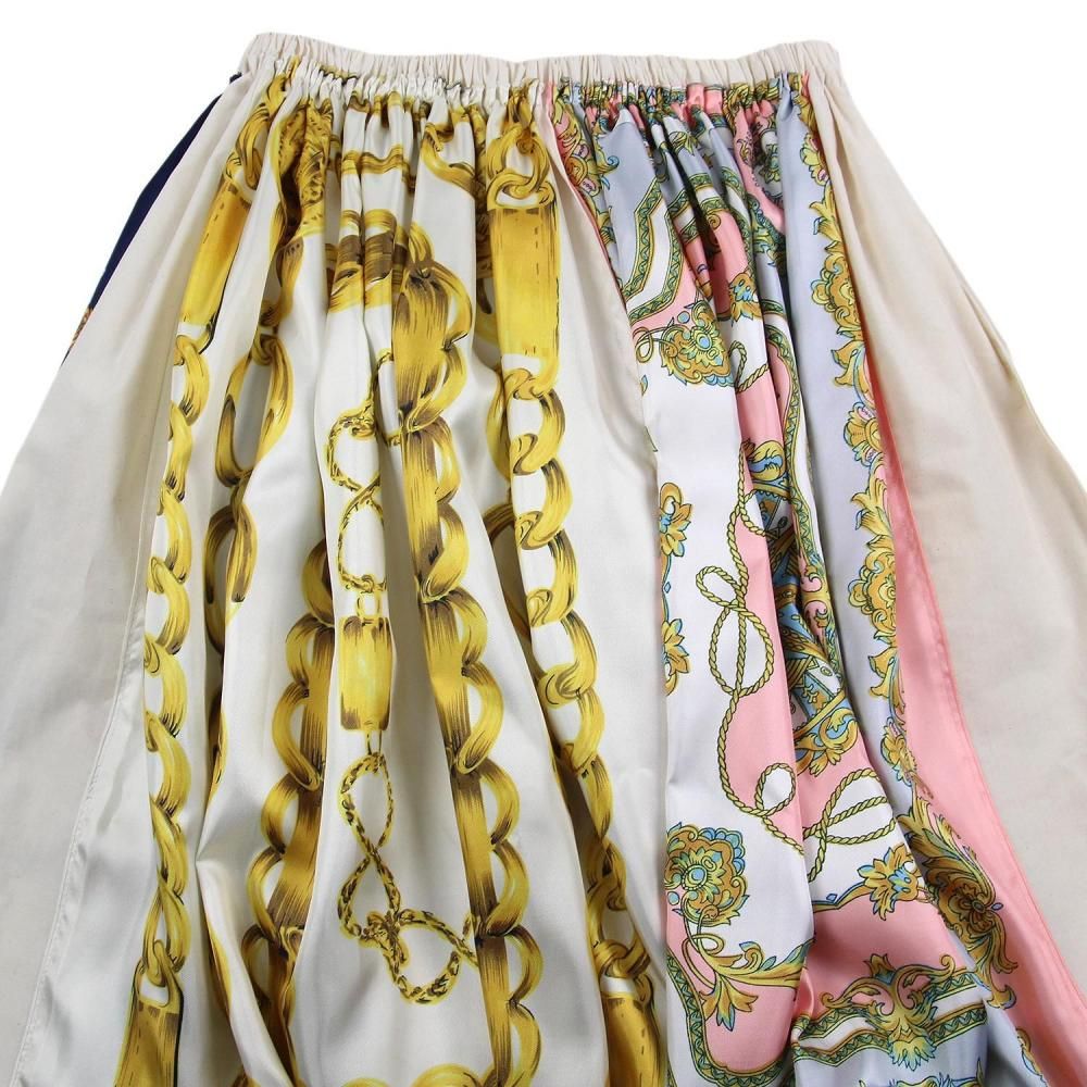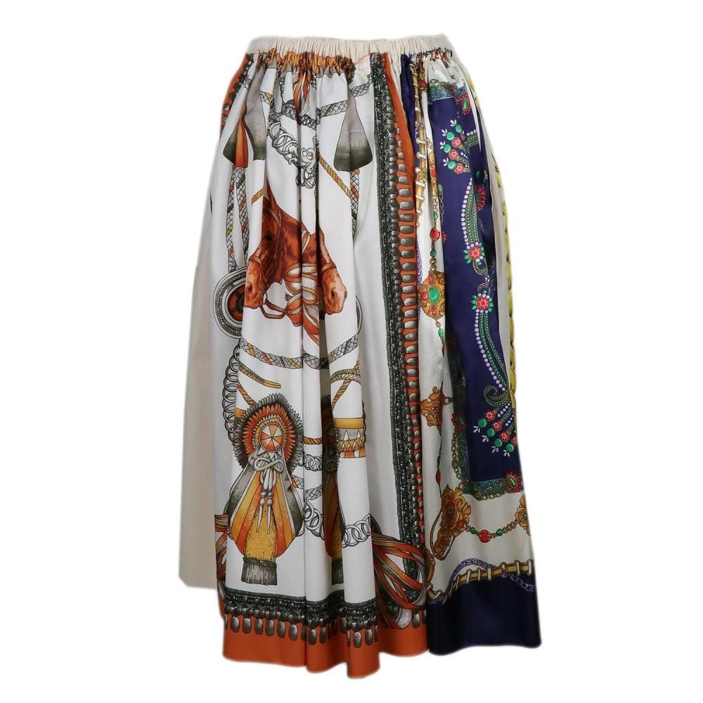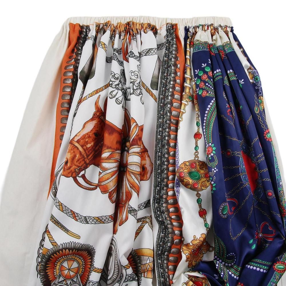4つの異なるプリント生地を剥ぎ合わせたスカート。