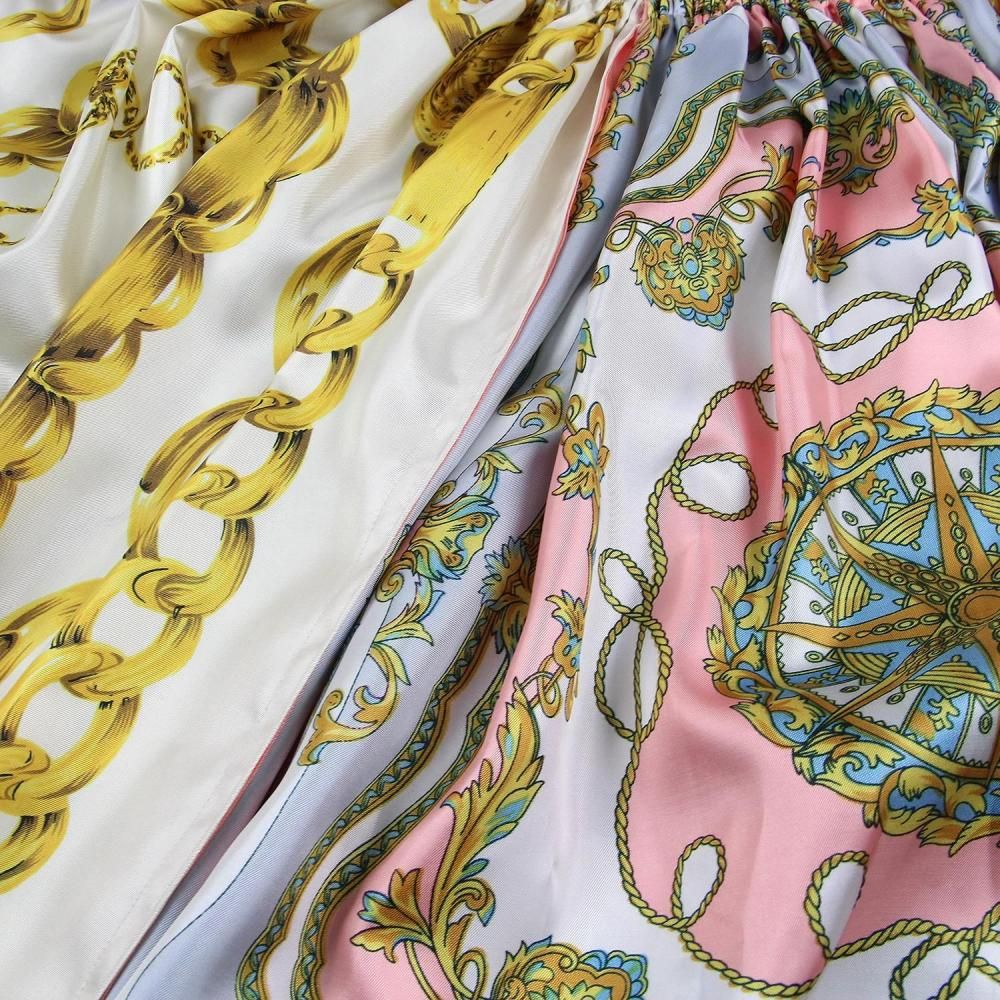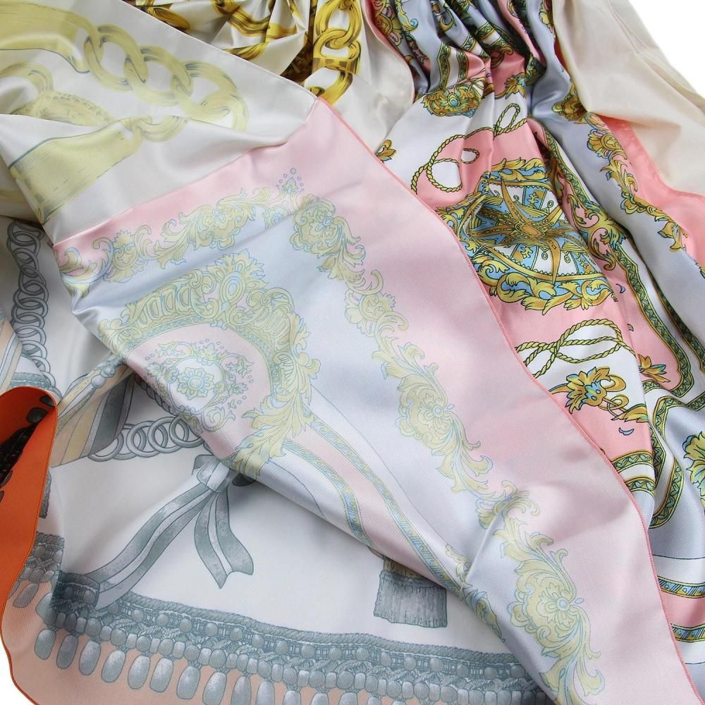 光沢のあるポリエステルサテン素材にオリジナルのスカーフ柄をプリント。