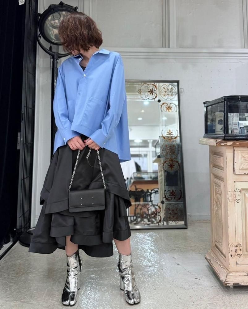前丈が後着丈に比べて10cmほど短いデザインになっています。
