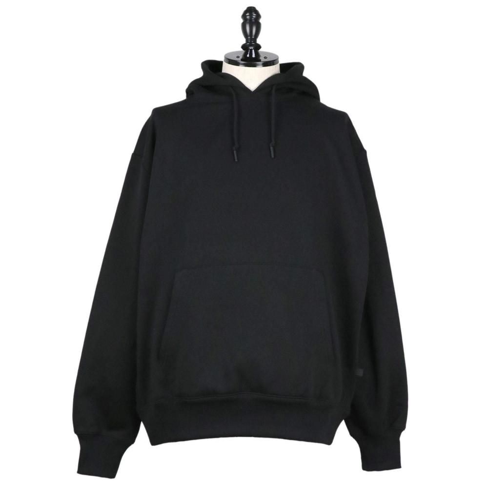 サイドに伸縮性のあるフライス地を仕様したシンプルなプルオーバースウェットフーディー。ゆったりとしたシルエットだが、ネックや袖口のリブをキツめに調整し、邪魔にならないよう細かいフィッティングにこだわった。ポリエステル100%のヘビーウェイトスウェット。裏起毛を強めにかけているのでフリースのような暖かさを感じる。アフターフィッシングに最適な一枚。