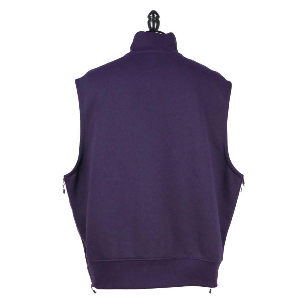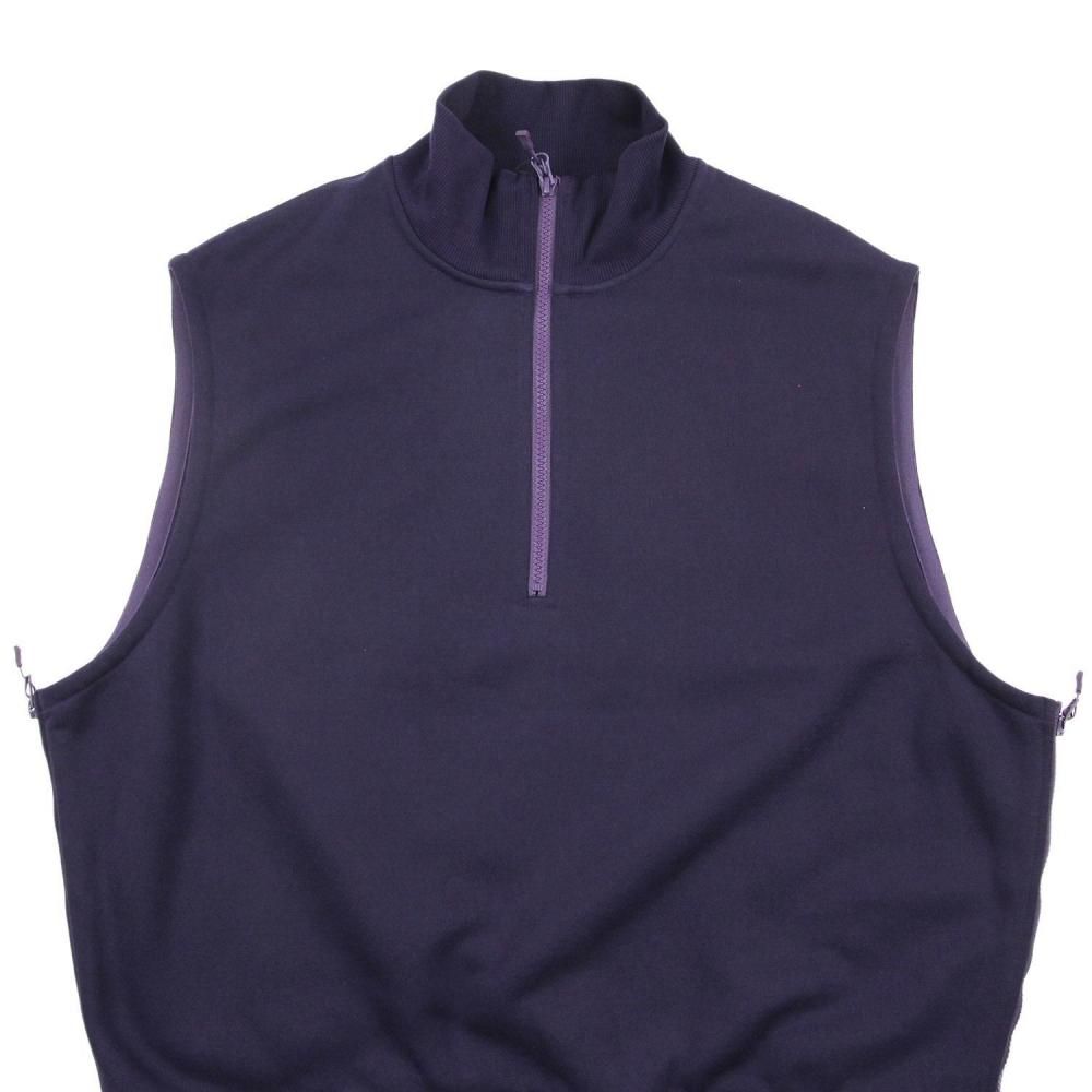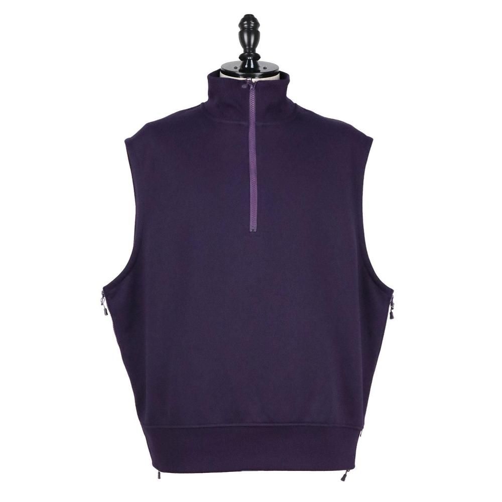 ハーフジップのスタンドカラースウェットベスト。両サイドには着脱しやすくするためのジップを加えた。ポリエステル100%のヘビーウェイトスウェット。裏起毛を強めにかけているのでフリースのような暖かさを感じる。アフターフィッシングに最適な一枚。