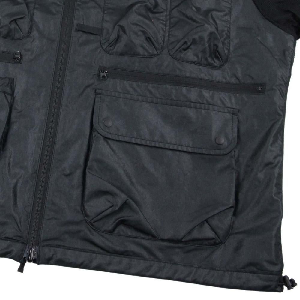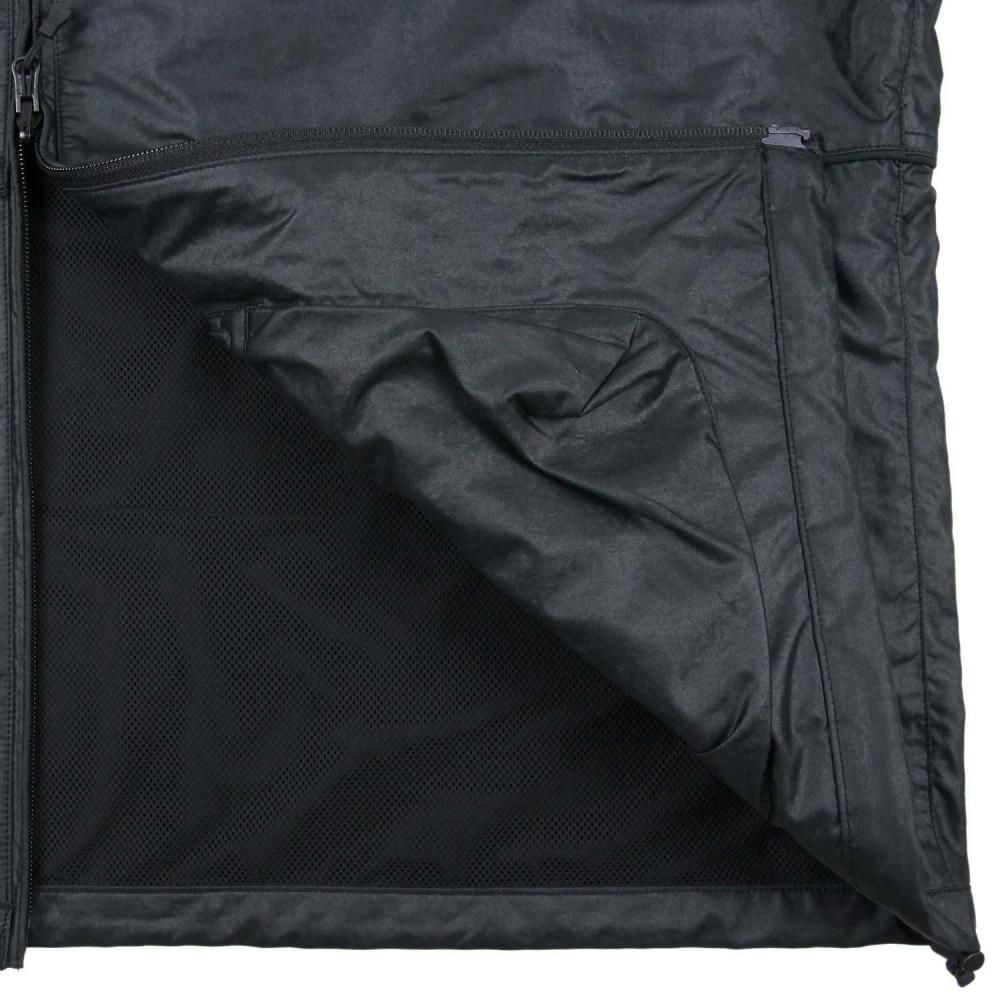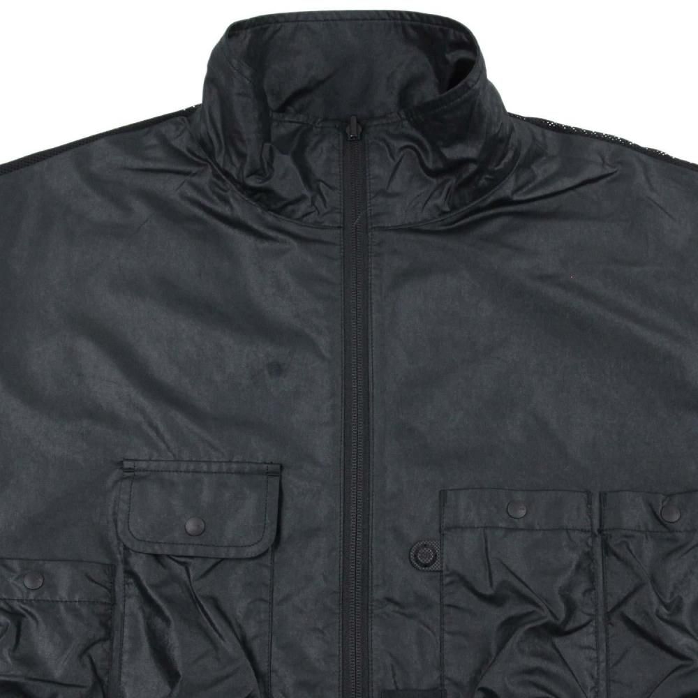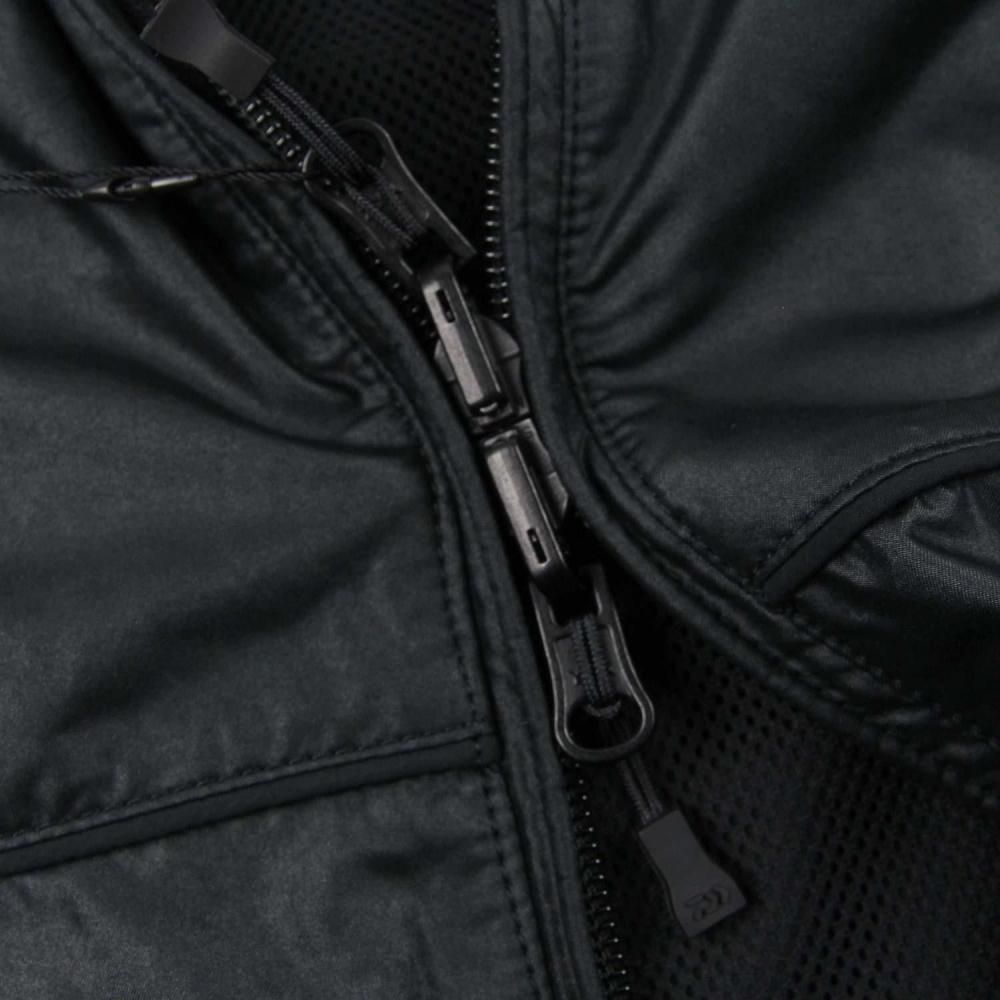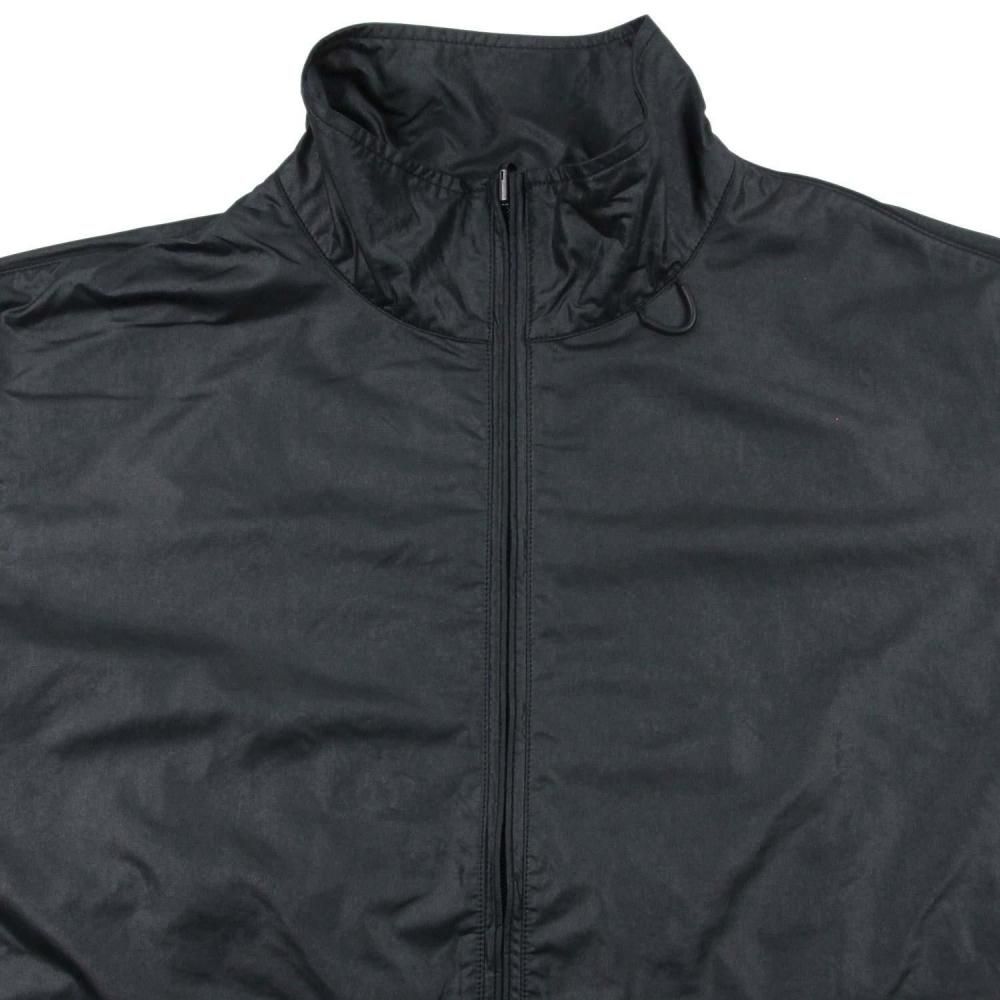 オイルドファブリックを彷彿とさせるようなテクニカルな生地にてアレンジ。フロントにはサイドポケット、フラップポケット、インナーには複数のインサイドポケットなど、様々なポケットワークを施し、見た目以上に収納力の高いトラックジャケット。内側は総裏メッシュ仕立てで、ドライタッチに着用できるのもポイント。ミニタリーディテールの特徴である前振りの袖も