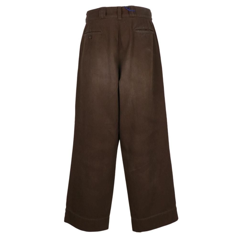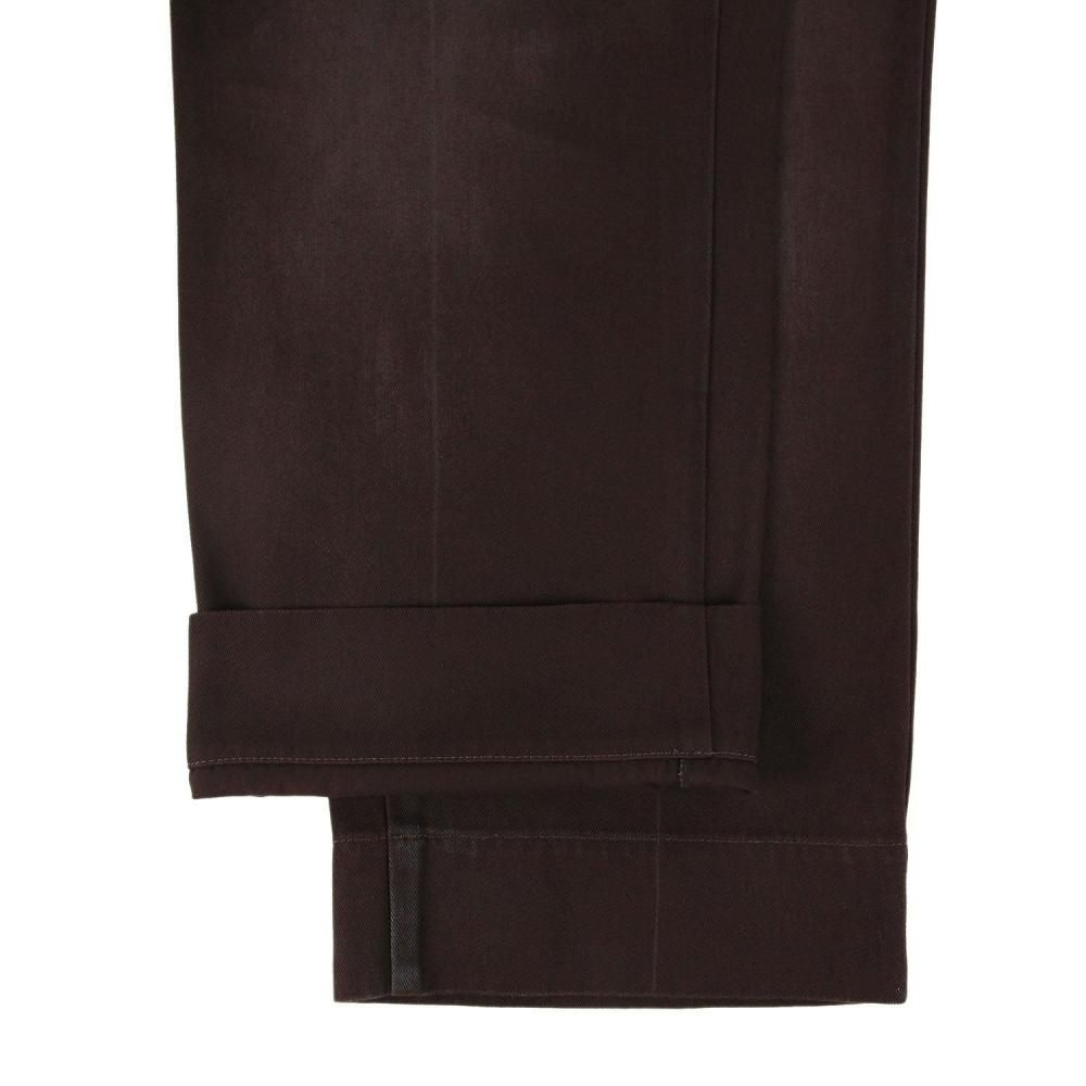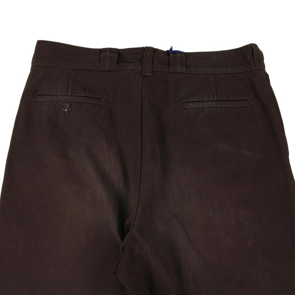 通常の加工ではなかなか色を落とすことのできないワークパンツですが、特殊な方法で長年穿き込んだようなアタリや生地の柔らかさを表現いたしました。