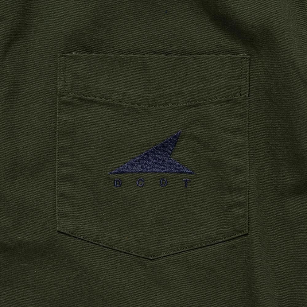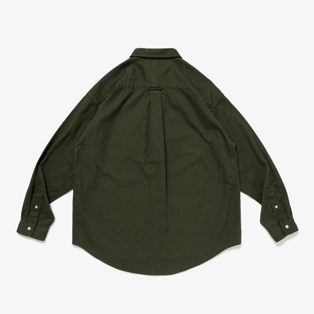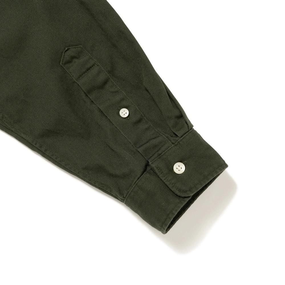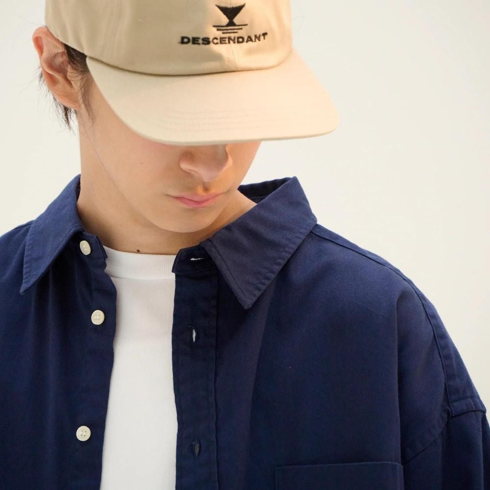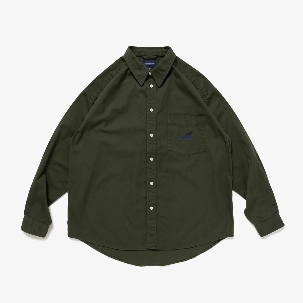 コットンカツラギを使用し、製品洗い加工を施したツイルシャツ。ゆったりした身幅のシルエット、レギュラーカラー、ループ付きセンターボックスプリーツ、ガントレットボタン留めの剣ボロ仕様。左胸のポケットにCETUSの刺繍ロゴ。