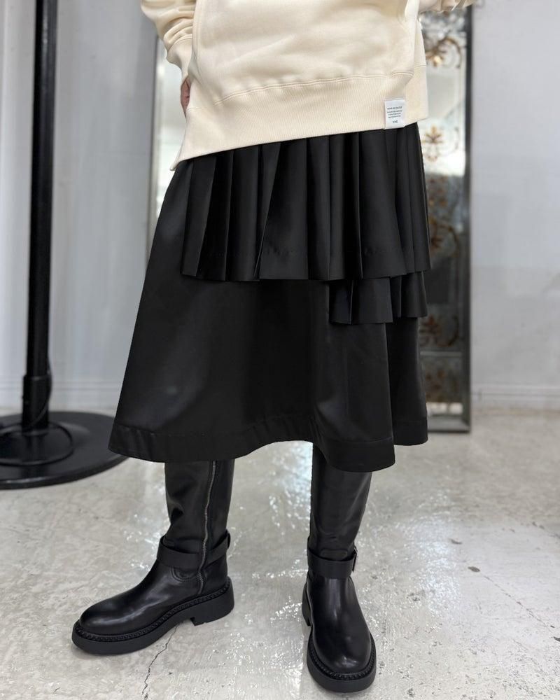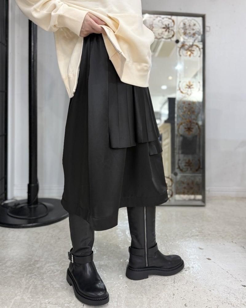 エステルサテン素材を重ねたデザインのスカート。