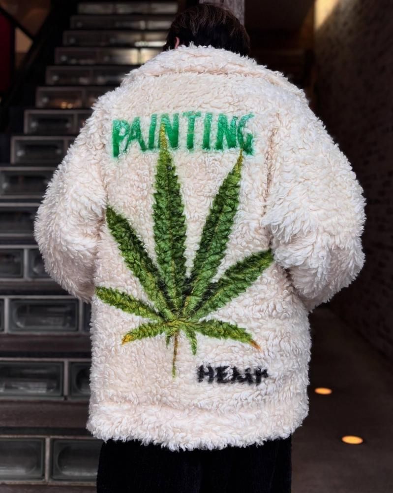 HAND-PAINTED HEMP FAUX FUR JACKET