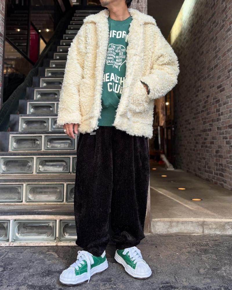 このフェイクファージャケットには、大麻から作られています。「大麻」と聞くと嗜好品のイメージが強いかもしれませんが、実は日本の暮らしの中で重宝されてきた繊維素材でもあります。強くしなやかで通気性に優れ、古くから衣類や生活用品に活用されてきました。また、日本古来の神道では、大麻は穢(けが)れを祓う神聖な繊維とされ、人々の罪や穢れを清める神の衣として用いられてきた歴史もあります。