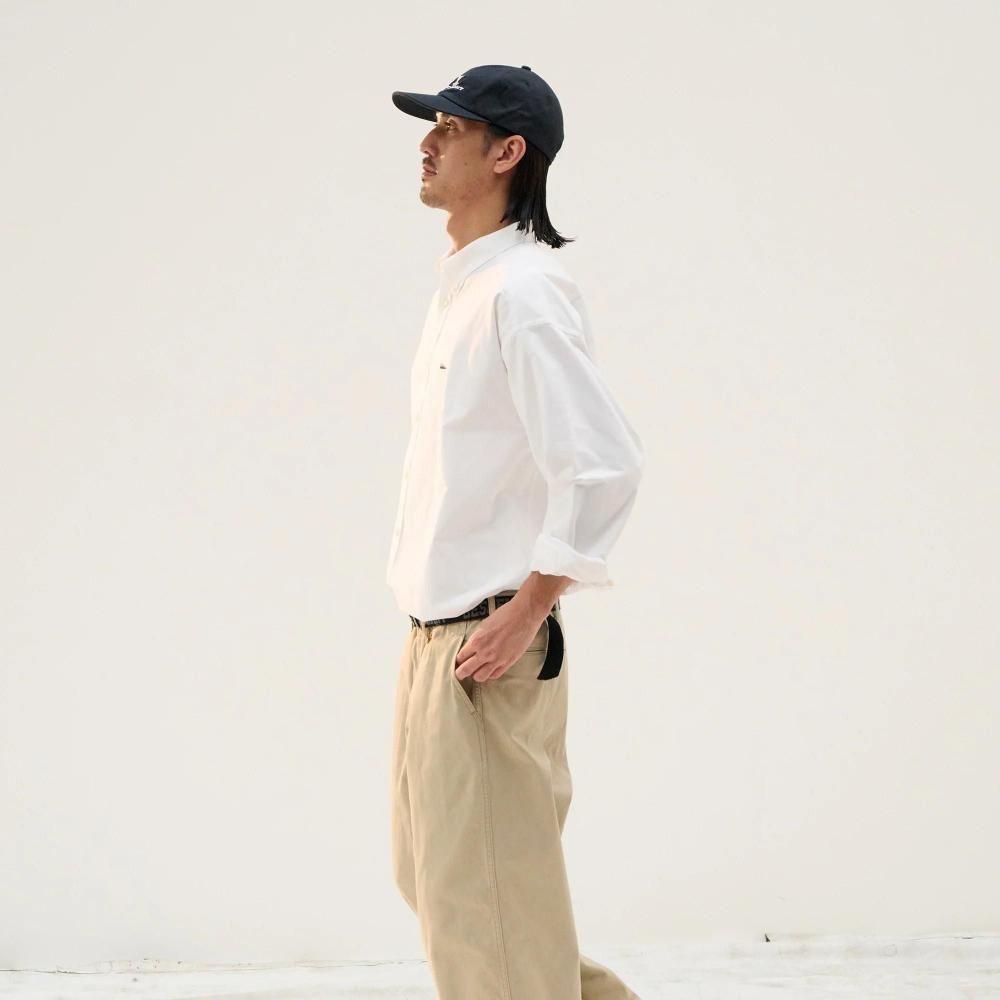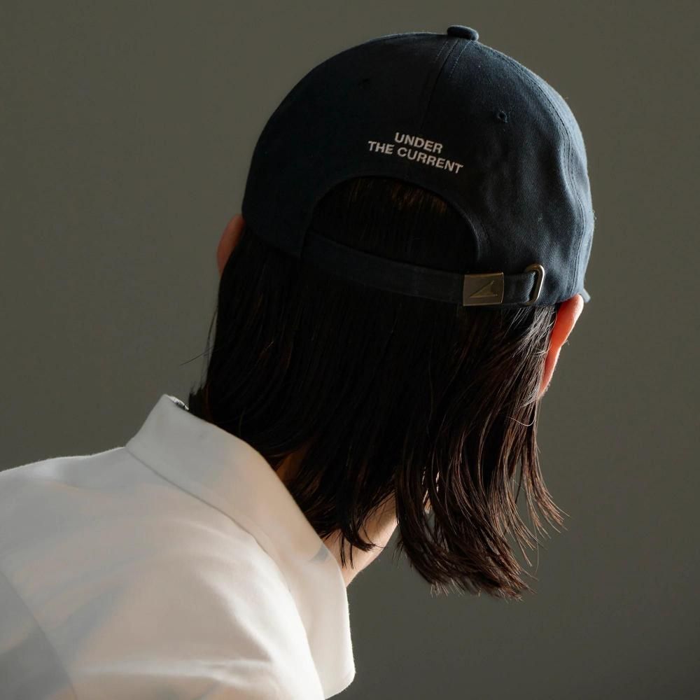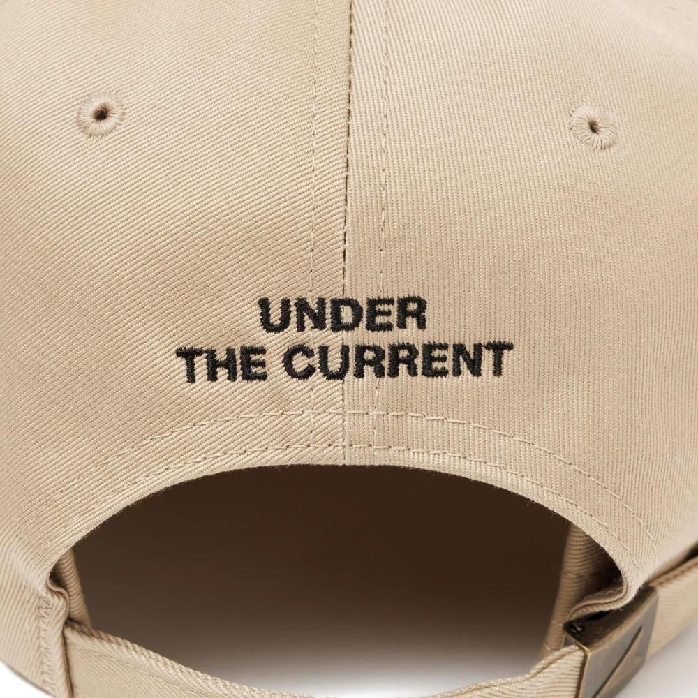高密度コットンウエポンにウォッシュ加工を施し使用した6パネルキャップ。フロントパネルにFLUKE UPのグラフィックを刺繍、背面にはUNDER THE CURRENTの刺繍と共地のアジャスターストラップ付き。