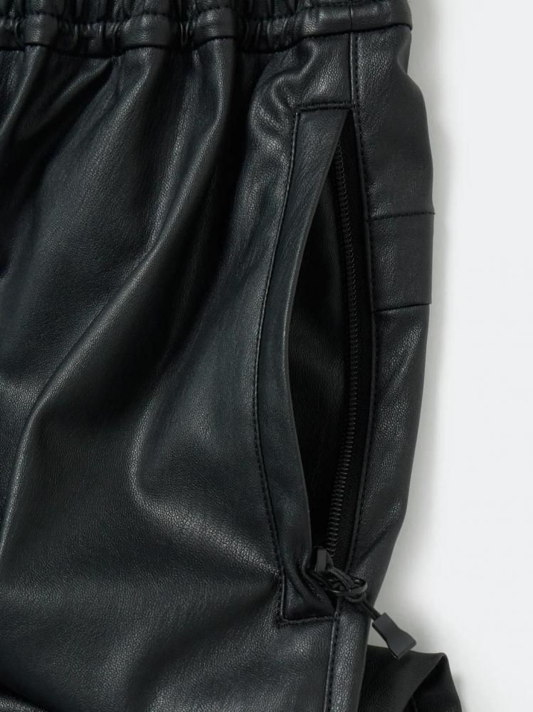 どこか懐かしいウィンドブレーカーパンツをシンセティックレザーにてアレンジした意欲作。