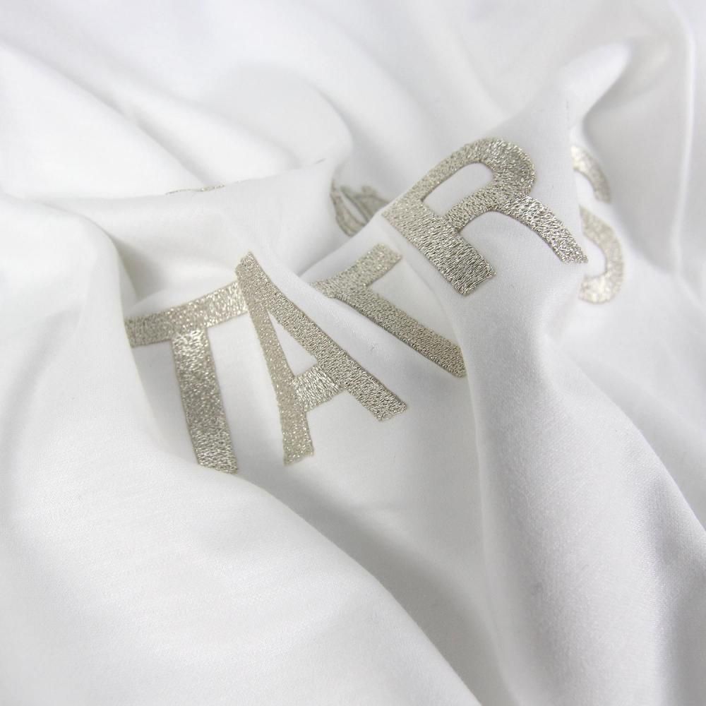 ロゴは柔らかく肌触りの良い特殊な圧着刺しゅうで表現しています。