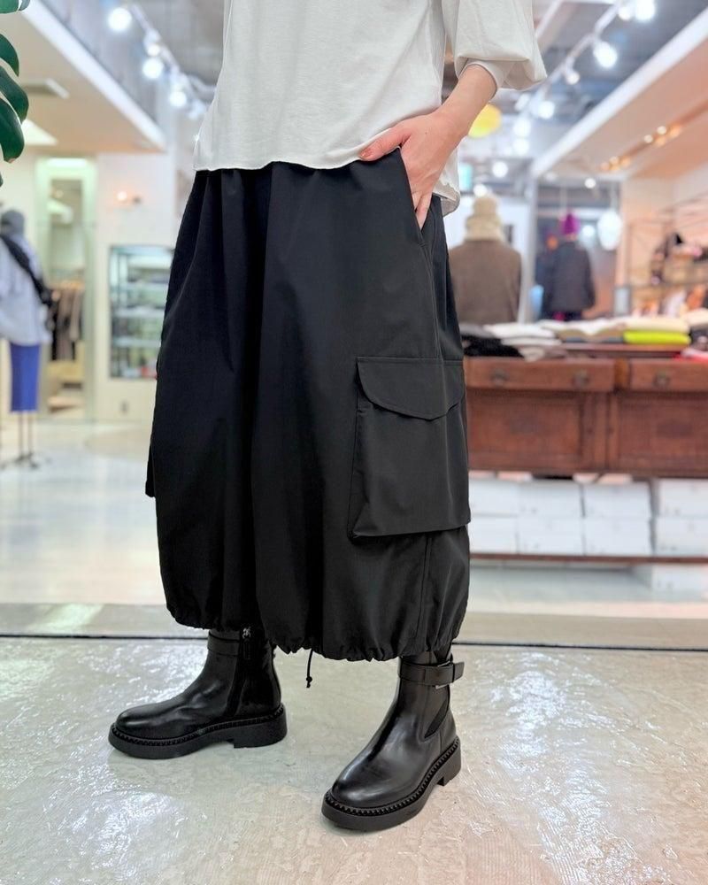 太めシルエットも足首が見えるクロップド丈でスッキリとしたバランスで穿いていただけるパンツです。