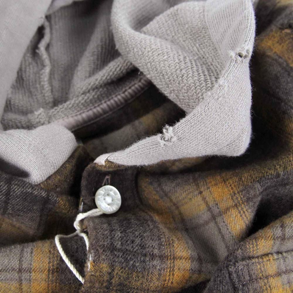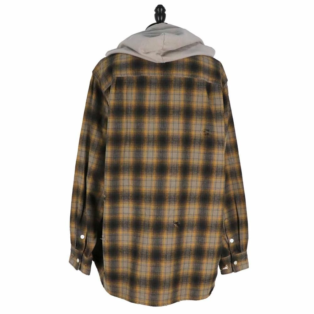 フードがコンバインドされたコットンフランネル生地のチェックシャツ。
