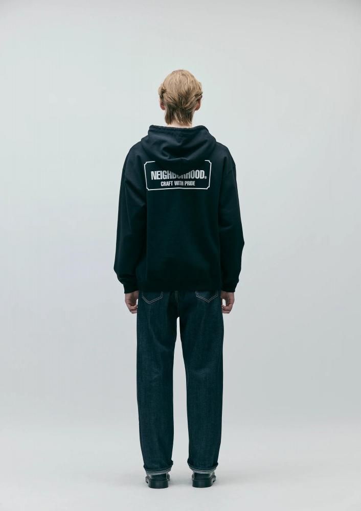 度詰めの裏毛素材を使用したハーフZIPフーディ。双糸使いのループを採用し、耐久性としなやかさを両立。左胸と背面にロゴをプリント。オリジナルのファスナープル、袖口にピスネームを付属。