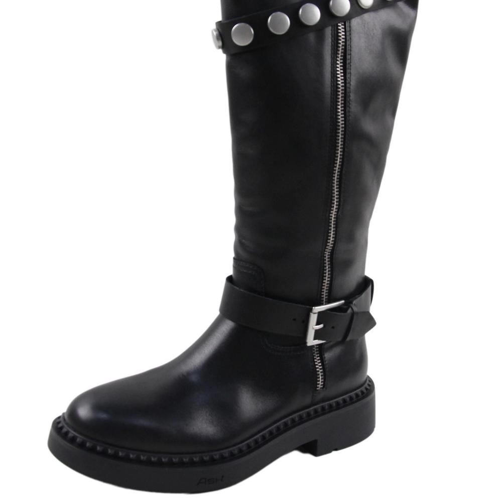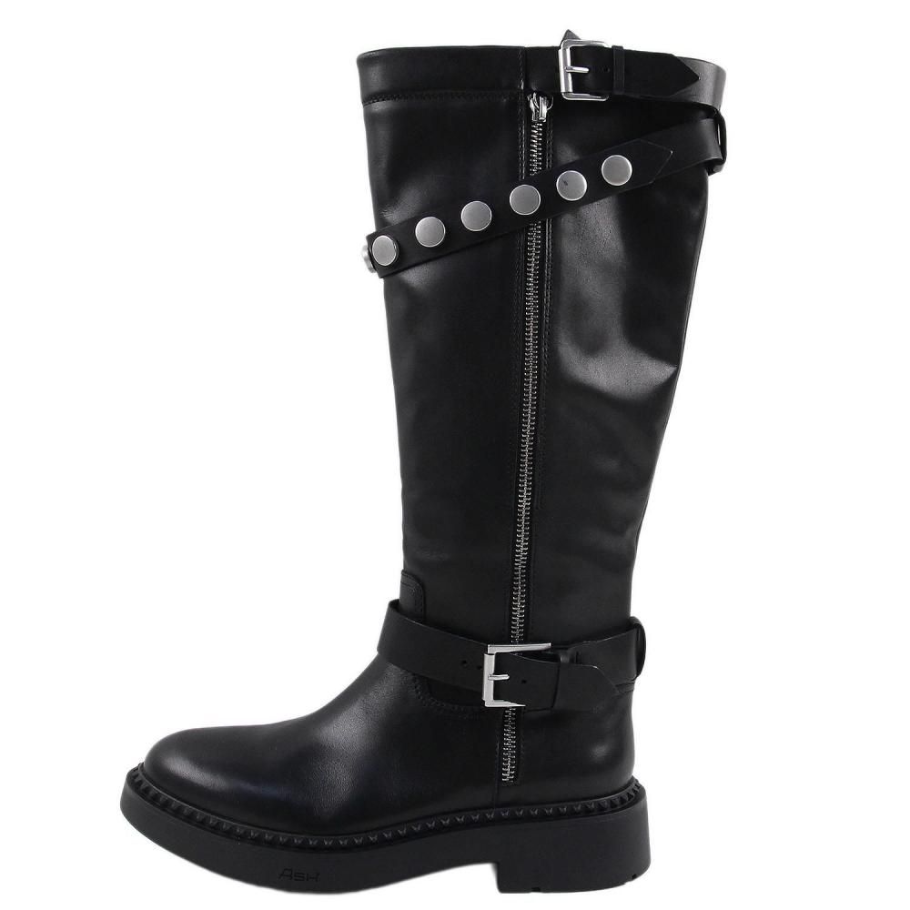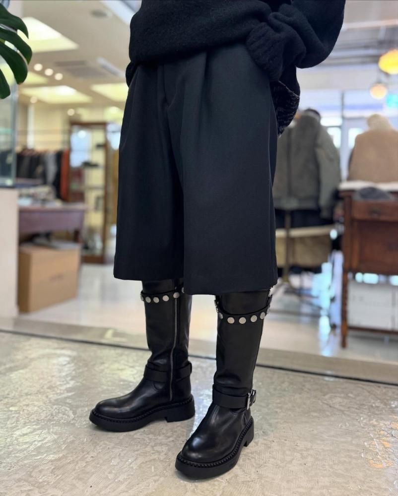 大胆に施されたシルバースタッズのベルトが特徴的です。
