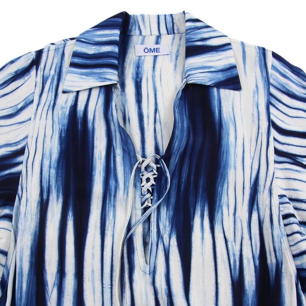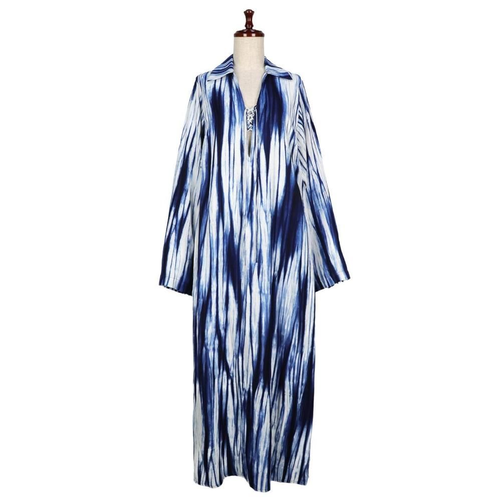 ネックラインが大きく開いたロングスリーブシャツドレス。