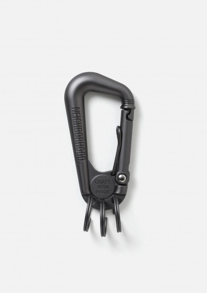 型から作成した、亜鉛合金製のカラビナキーホルダー。