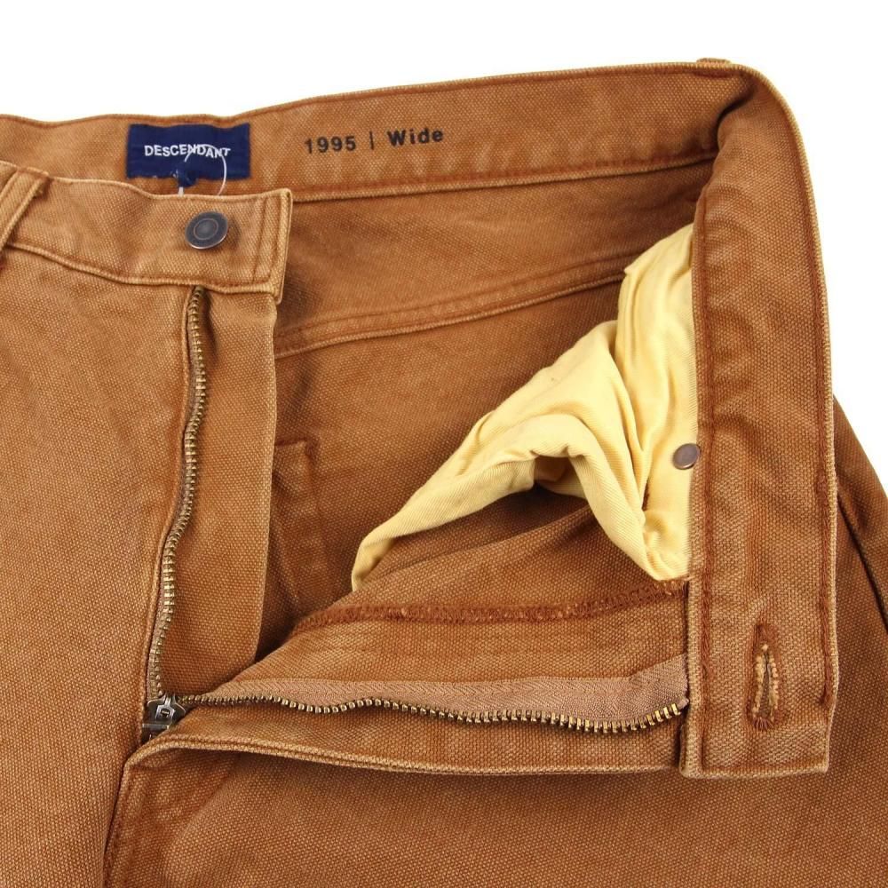 ゆったりとテーパードしたバギー型のシルエット、コインポケット付きのLポケ及びパッチポケットを前後に、腰帯の内側に「1995 | Wide」のプリント。