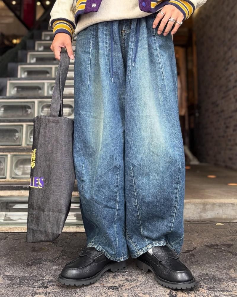 ウエストと裾のダーツ処理によってフロントが大きく膨らんだ、独特のシルエットが魅力の人気アイテムH.D. PANT。リラックス感のあるシルエットと、開放感のあるストレスのない履き心地も魅力です。リアリティのある色落ちがヴィンテージ感漂わせる12オンスウォッシュドデニムを使用し、5ポケットジーンズのデザインに落し込んだ一本。
