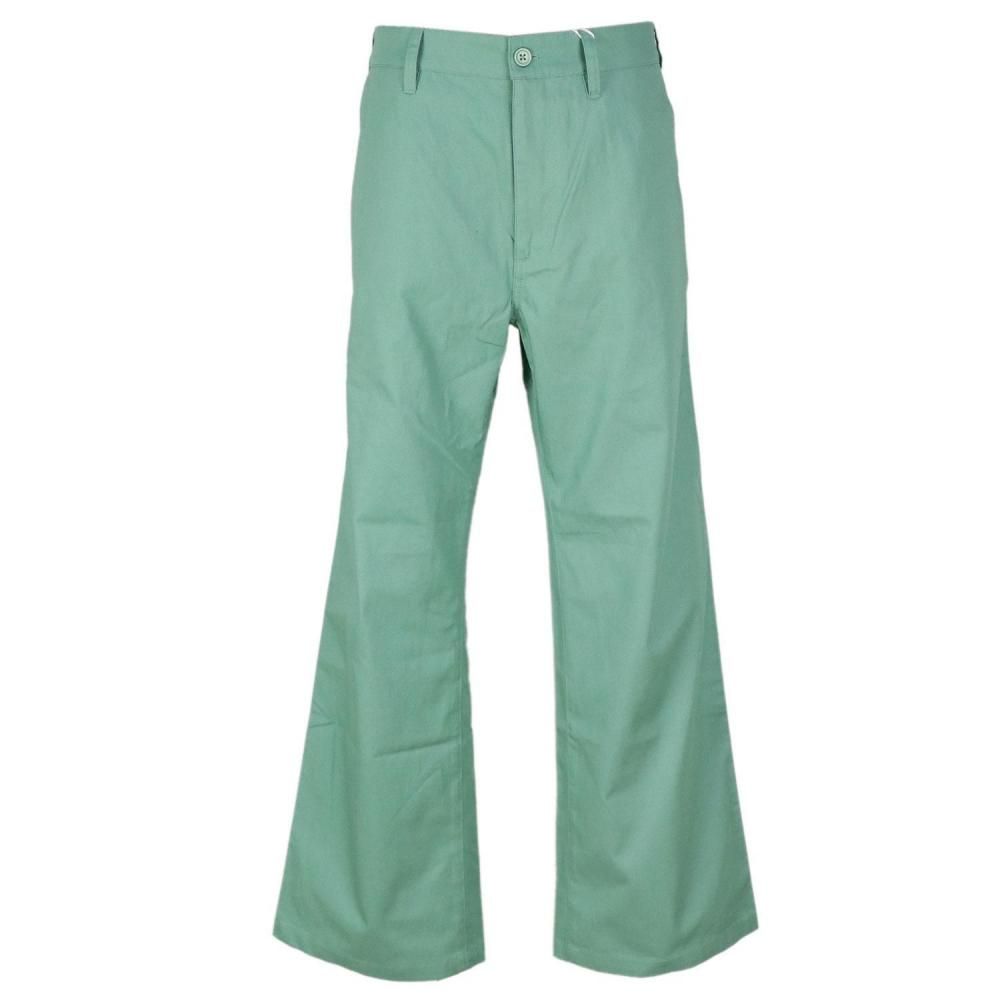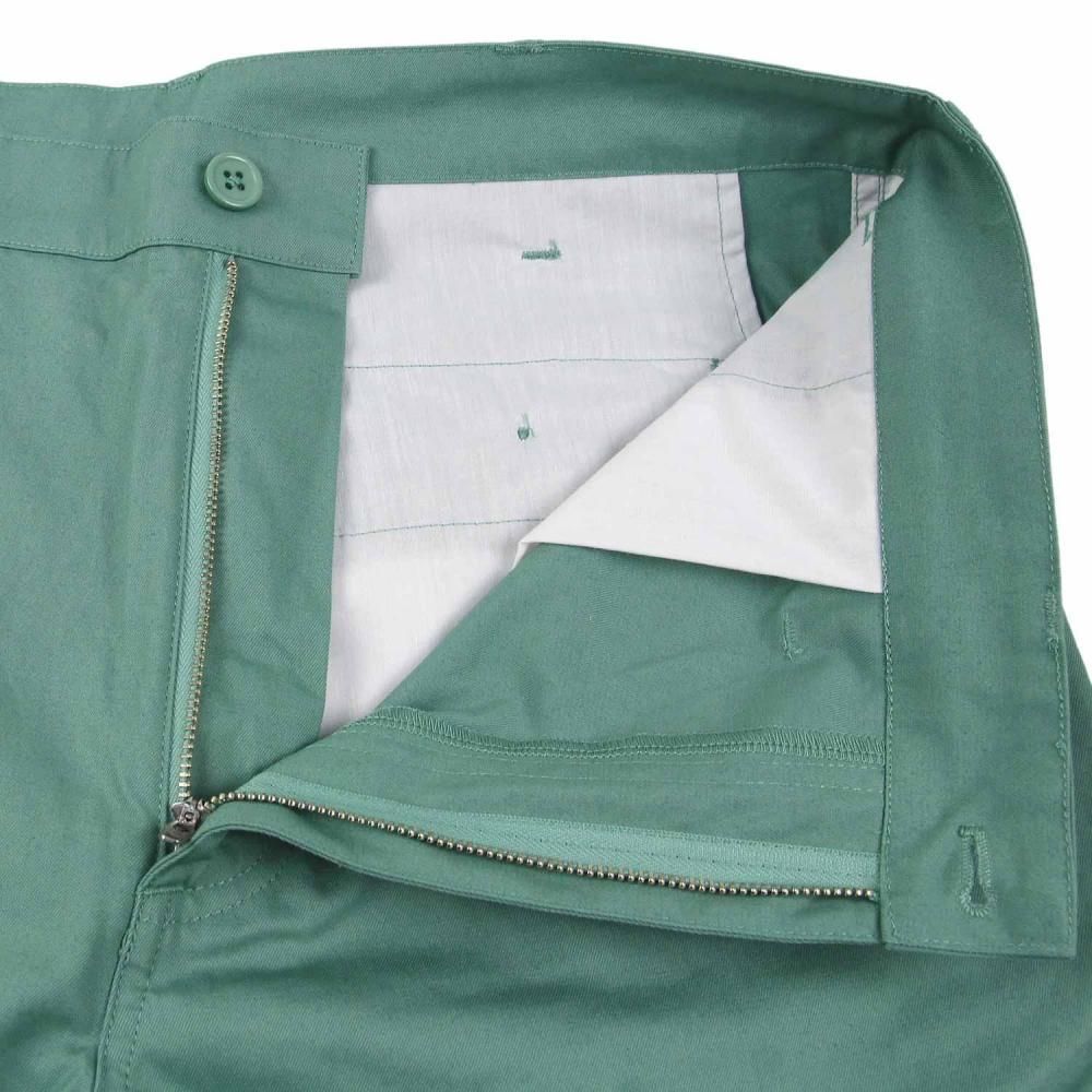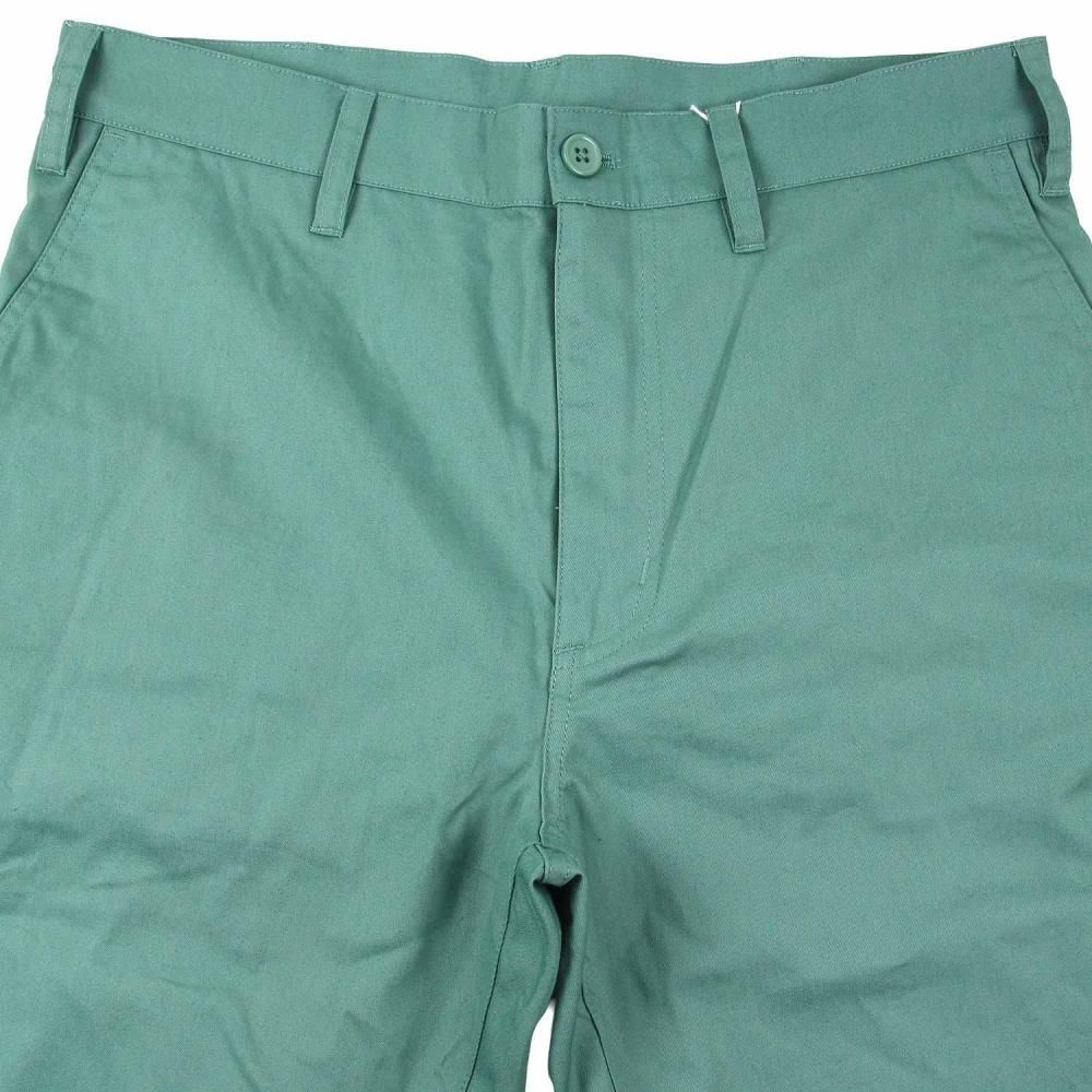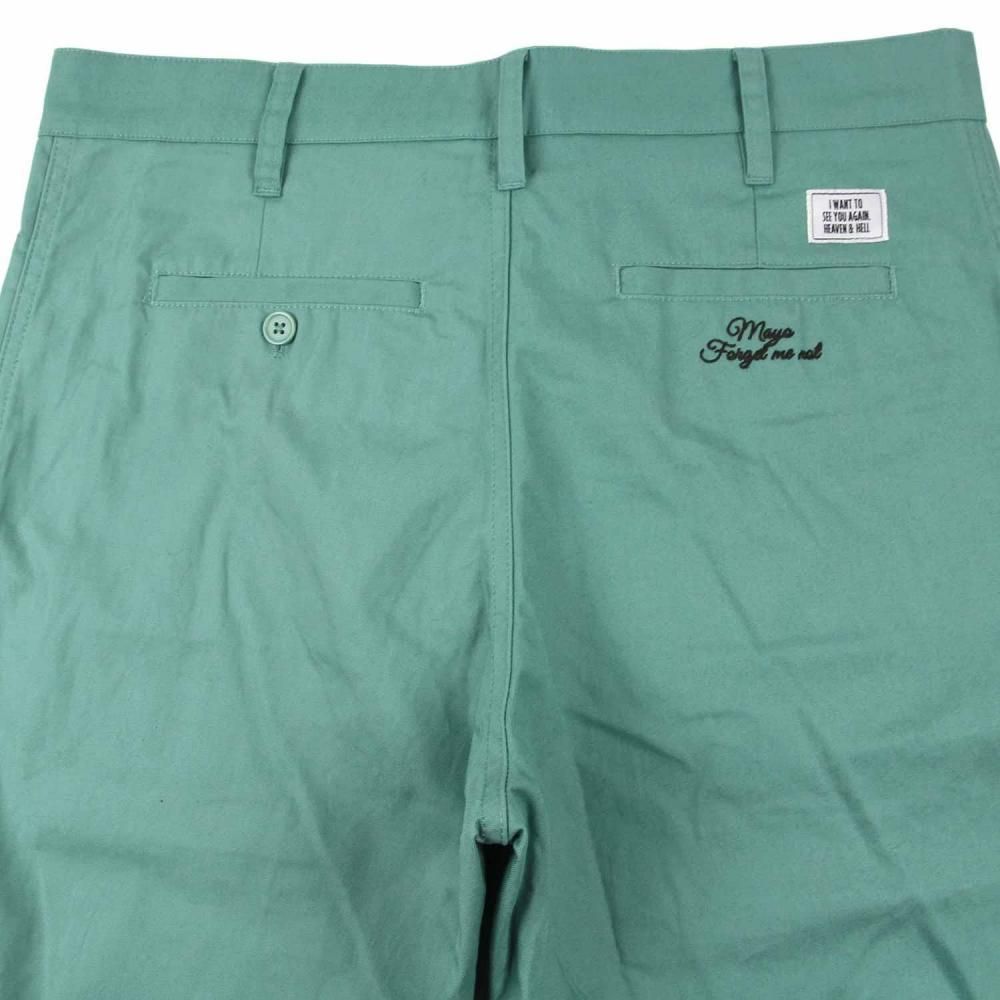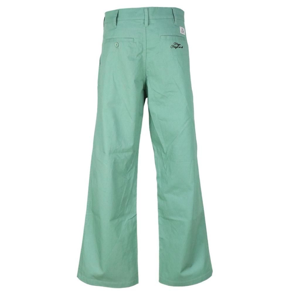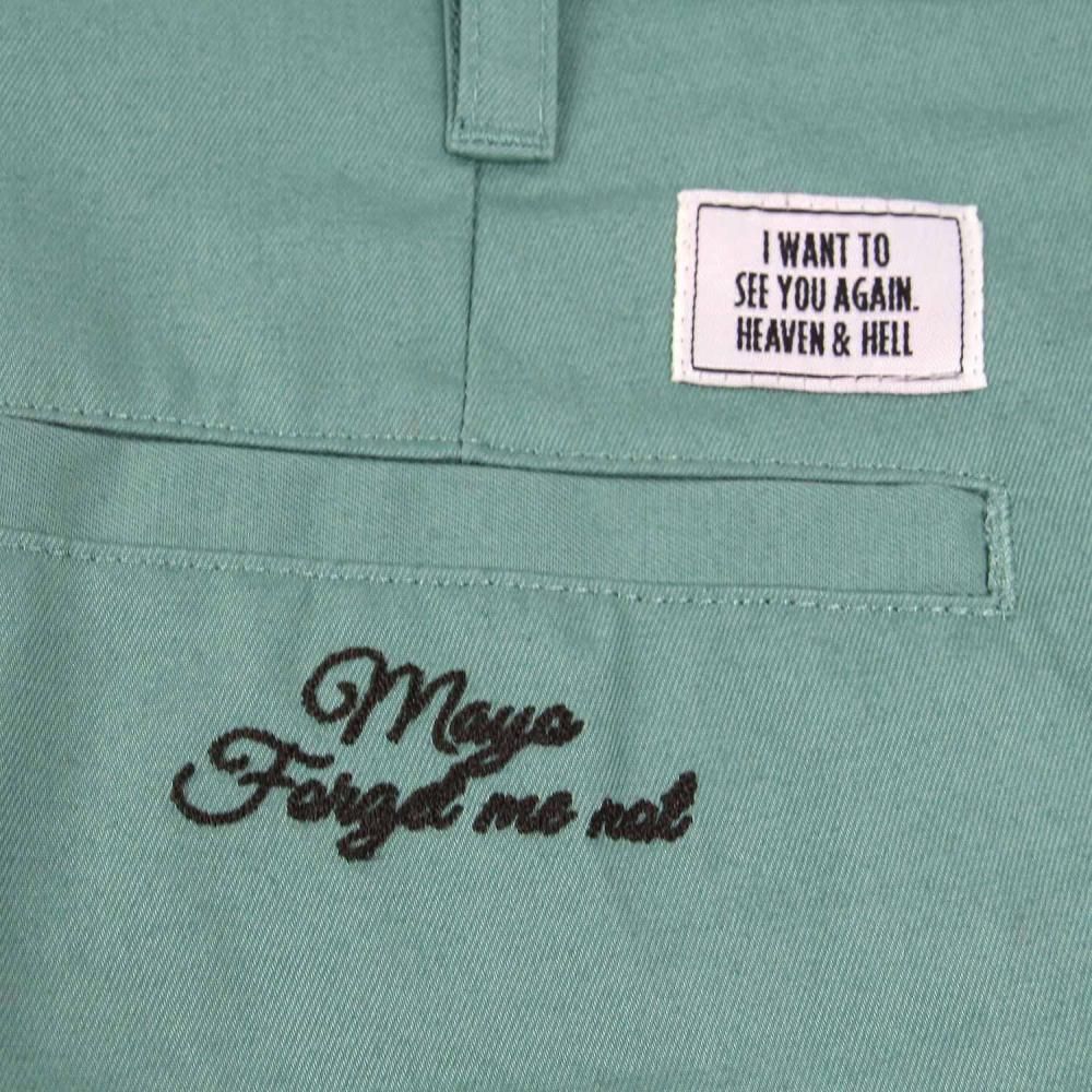 バックにロゴ刺繍とピスネームをつけたストレートタイプのシルエットの美しいシンプルなチノパンツ。