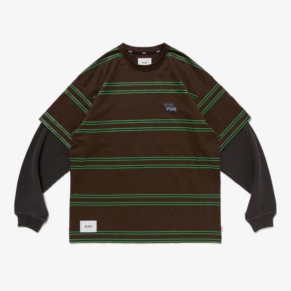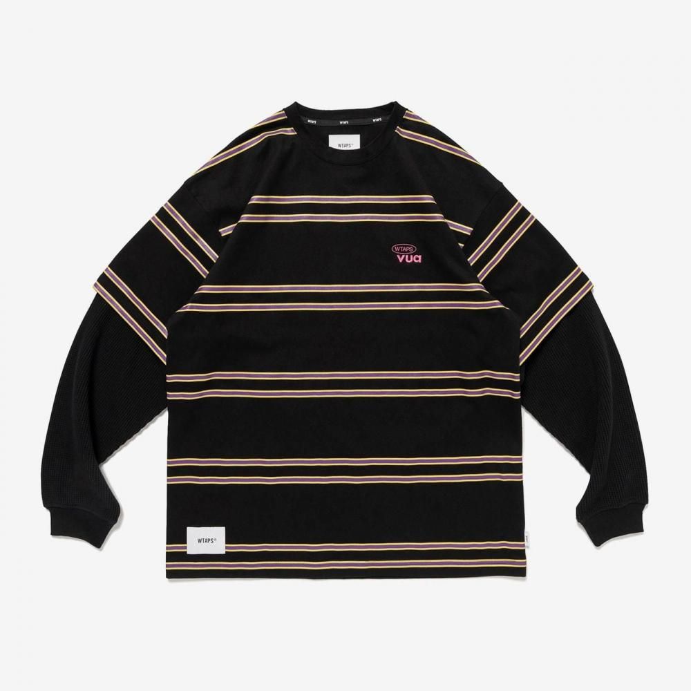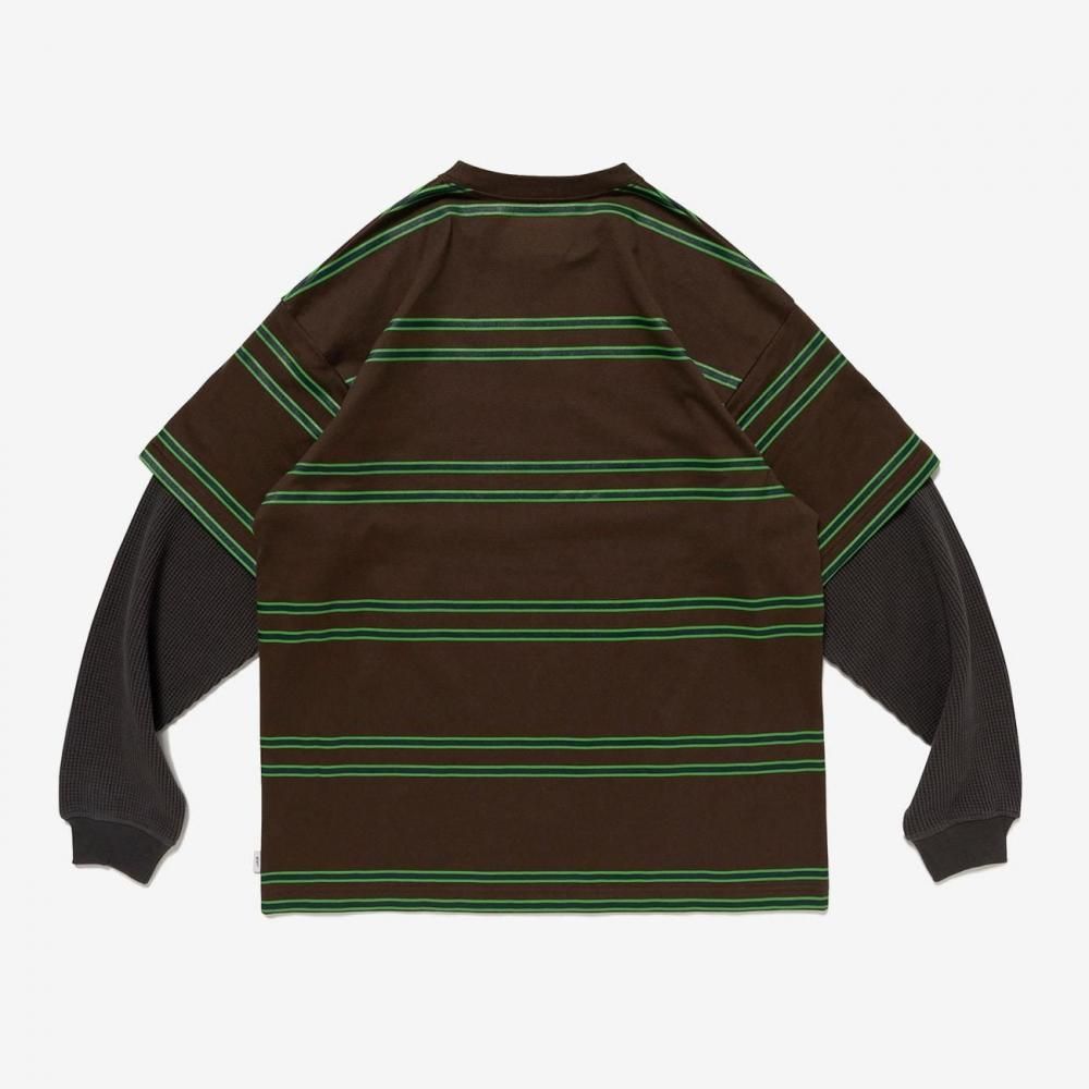オリジナルボーダー生地とワッフル生地を使用したレイヤードタイプのロングスリーブTシャツ。