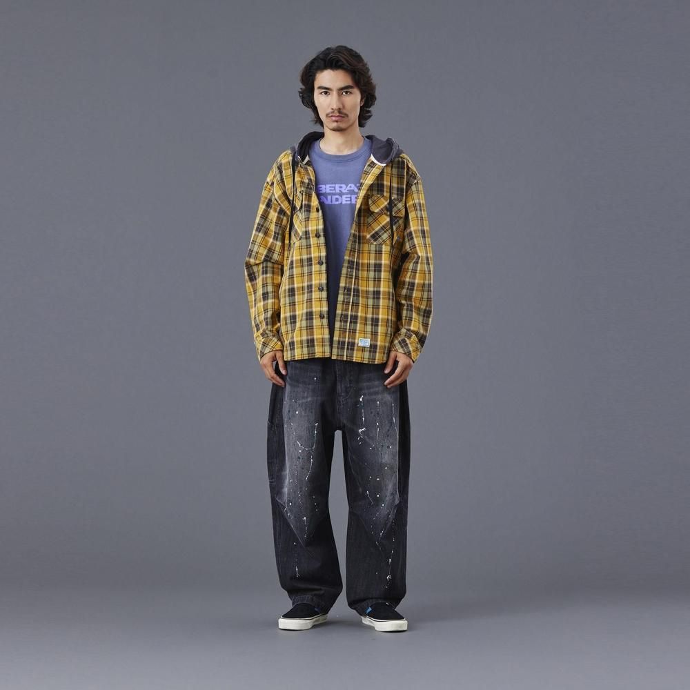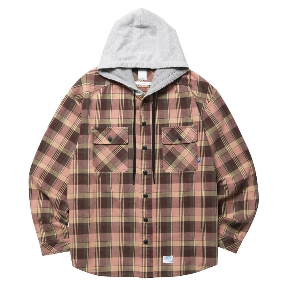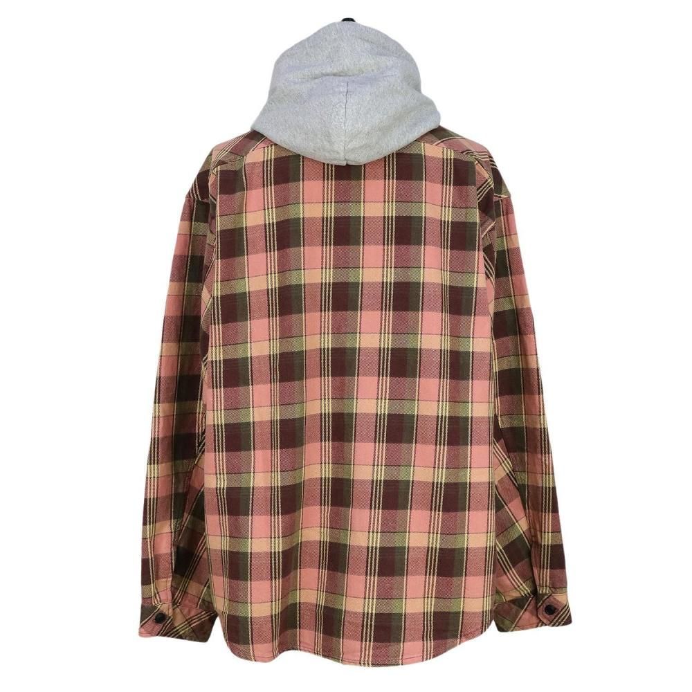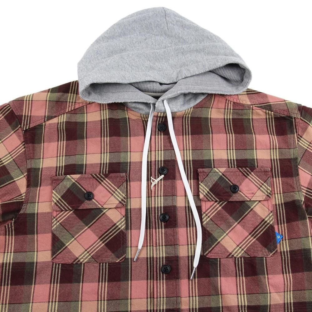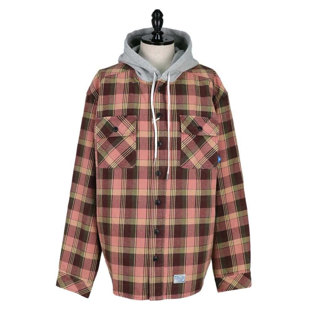 地厚なヘビーネルを使用し、フーディとのレイヤード風に裏毛のフードをドッキングしたシャツ。
