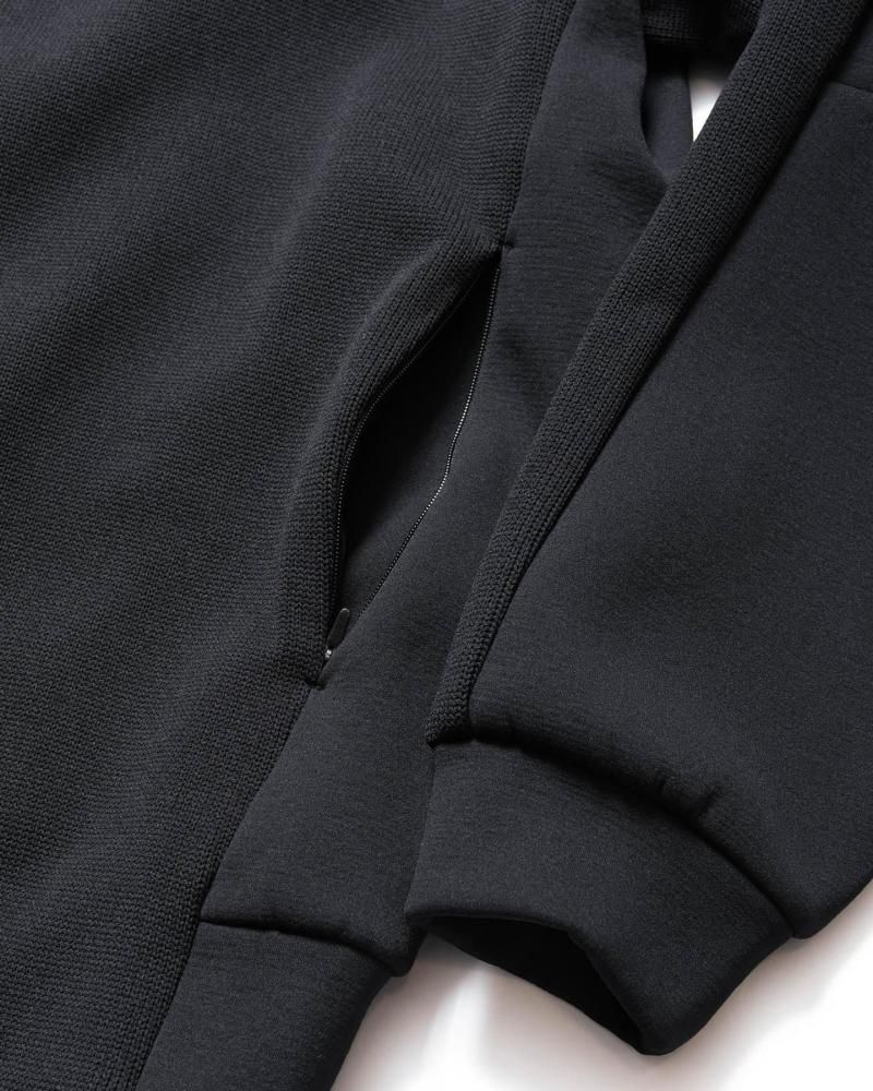 表裏で異なるゲージの素材を使用し、ボンディングされているように編み立てたダブルフェイス素材「クォーターニット」の新作ブルゾン。フィット感が非常に心地よく、軽量で軽撥水性にも優れているので、長時間かつ悪天候下での移動や屋外でのトレーニングにも最適です。