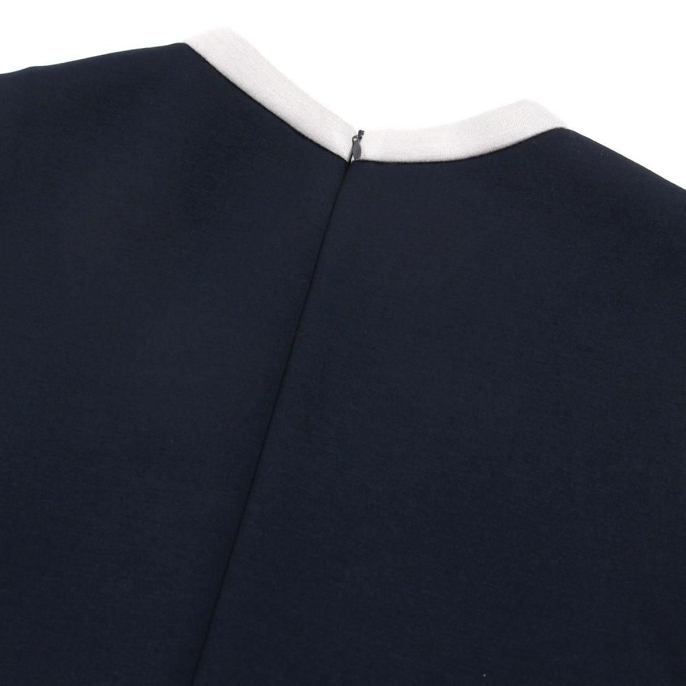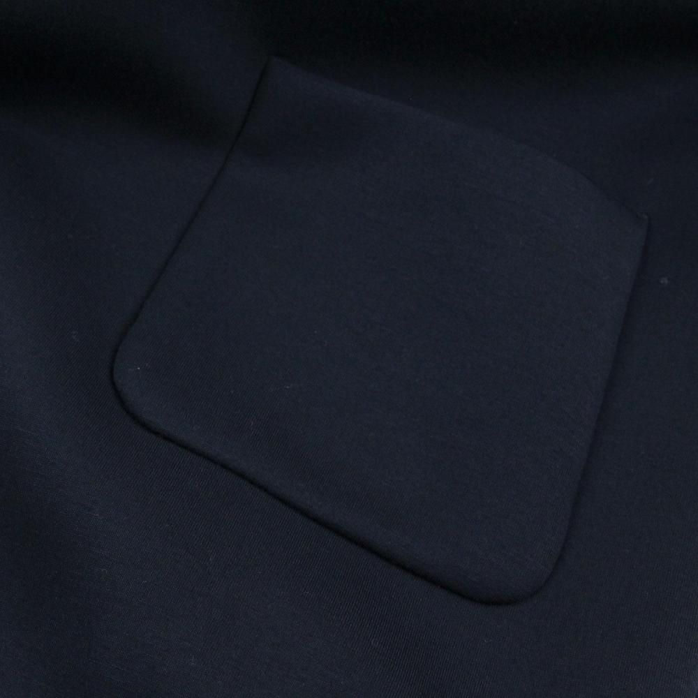 シルエットは、クルーネックのややフレアライン。コントラストカラーのパイピングディテールがアクセントに。