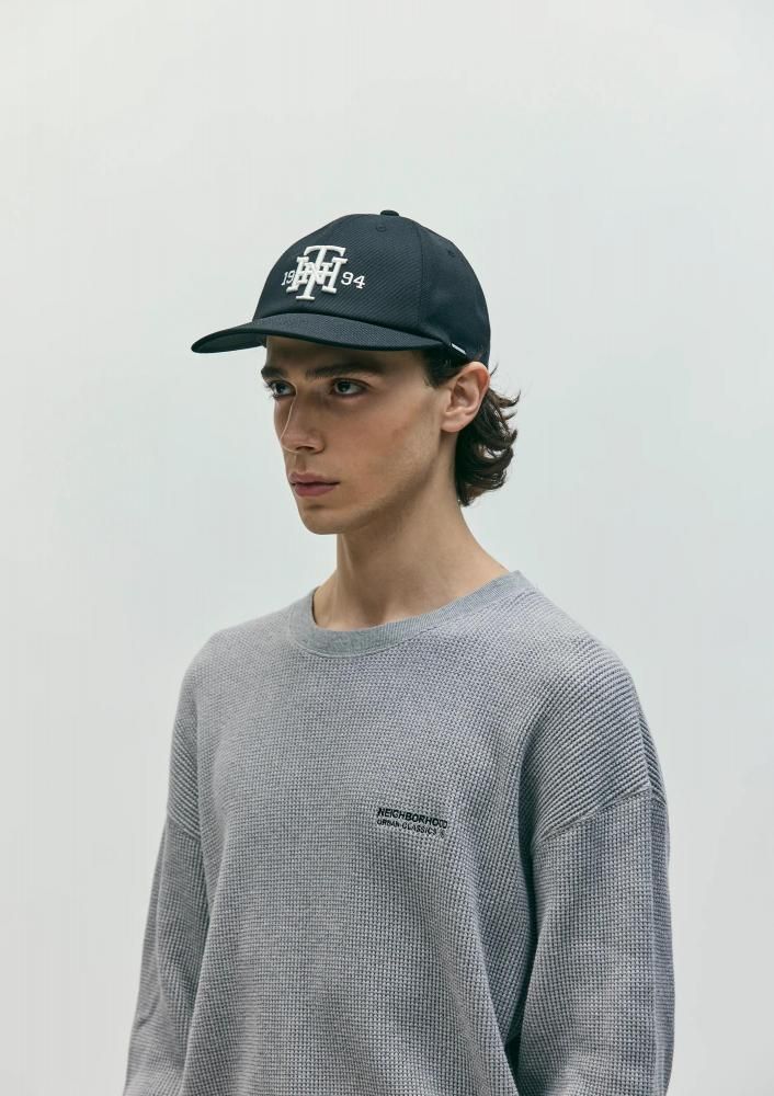 強撚の糸を使用した、耐久性や吸水速乾性に優れるT/Cカツラギ素材のベースボールキャップ。フロントにロゴと創立年を3D刺繍と振り刺繍で表現。後部アジャスターにはオリジナルバックルを採用。左サイドにピスネームを付属。