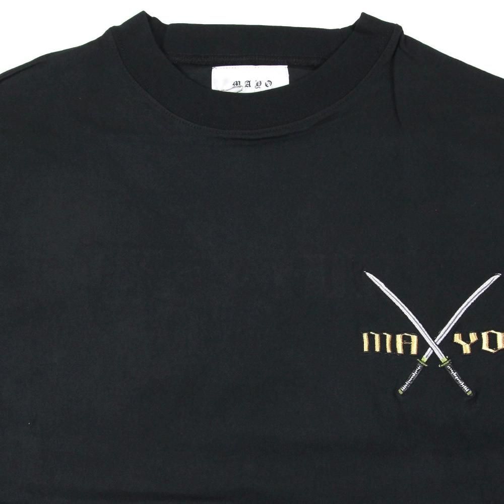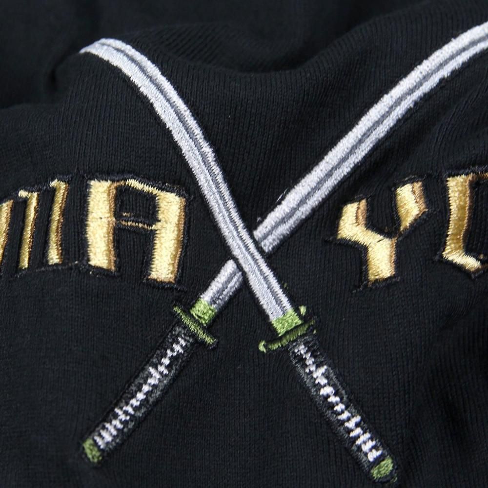 着心地を配慮してフロントの胸部分の刀とバックの刀部分のみ刺繍となっておりその他の部分はプリントになっております。