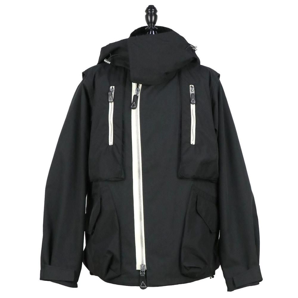 フードや裾はドローコードで自在に調整可能、アクションプリーツが動きに余裕を与え、ポケットワークは機能美とスタイルを両立。