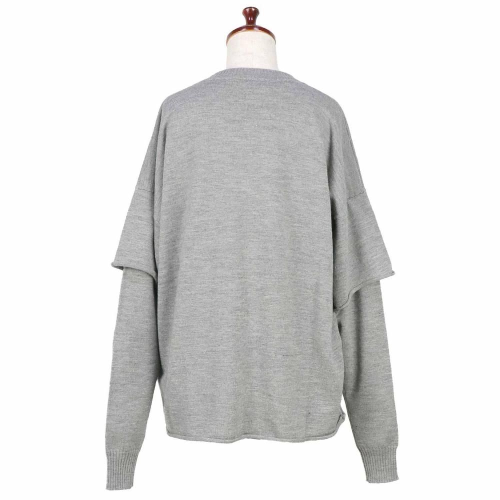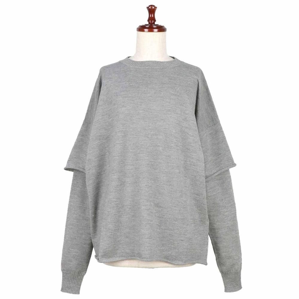 袖がレイヤード仕様になったクルーネックニット。
