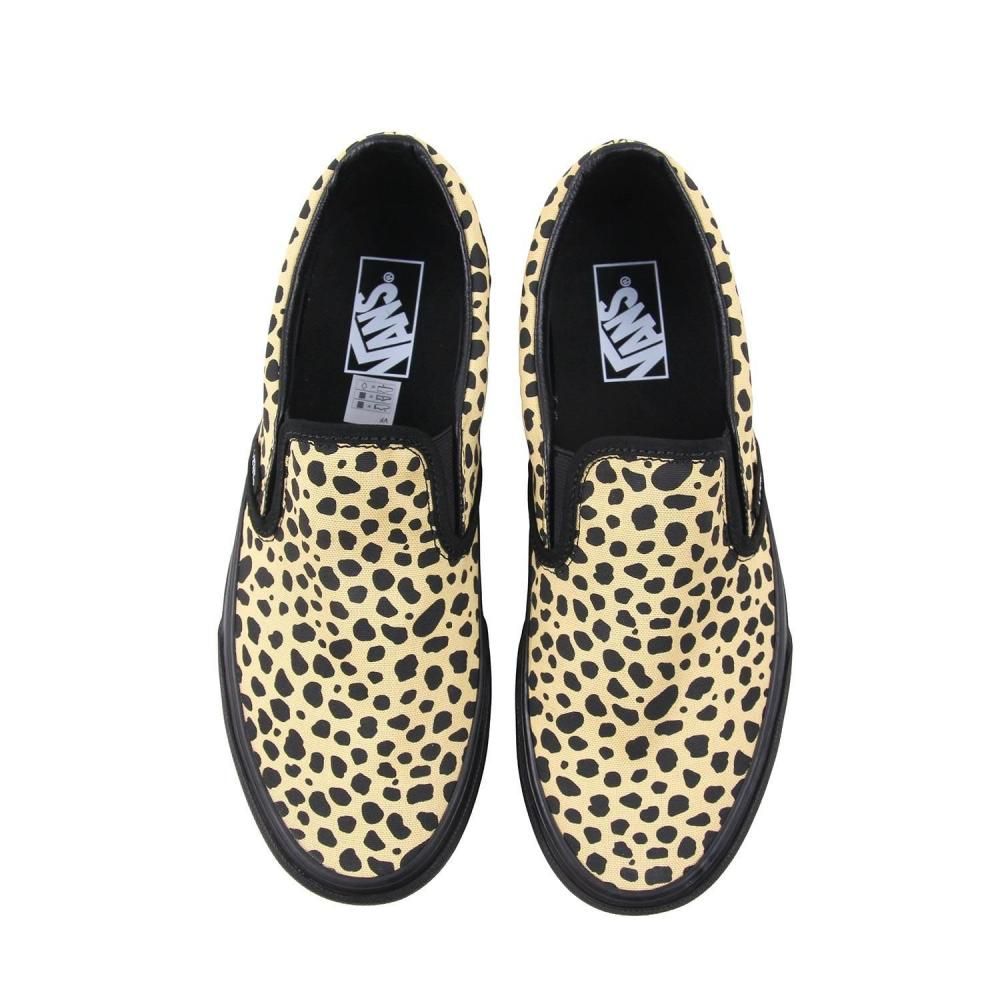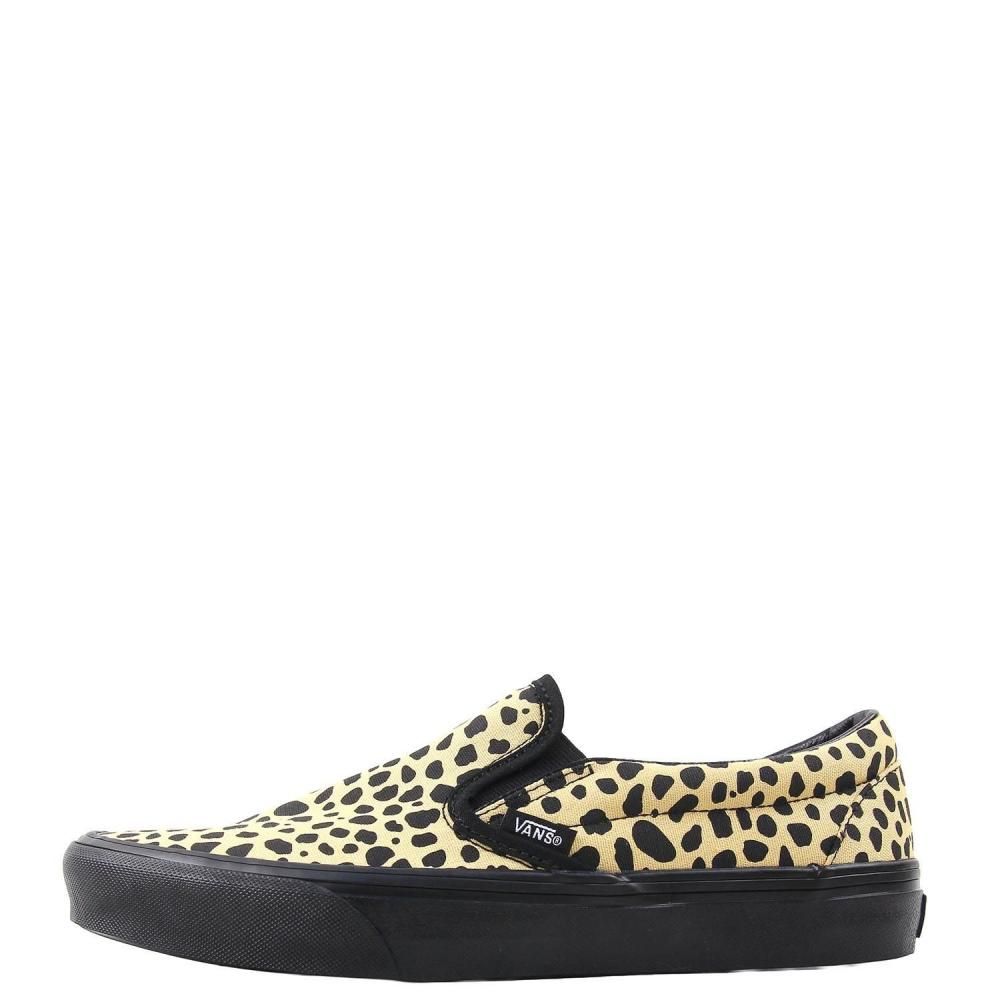 普遍的な魅力のスリッポンにY2Kらしいアニマルパターンをあしらった一足。