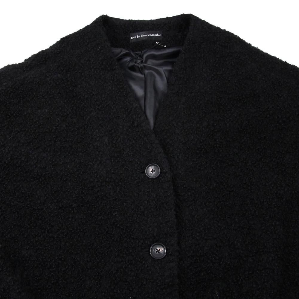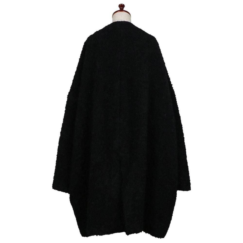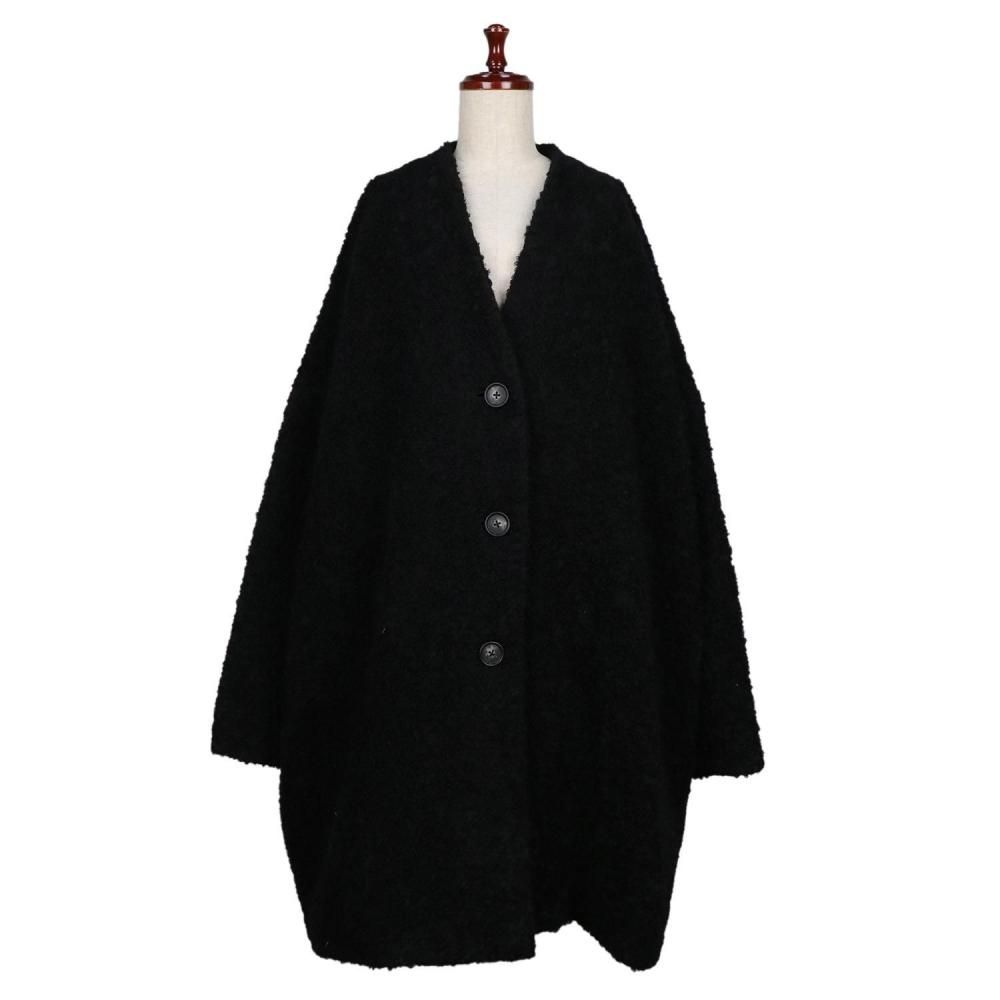 柔らかく温かみのあるノーカラーコート。