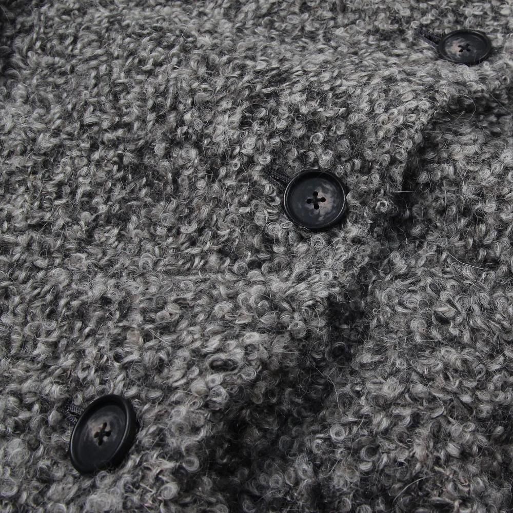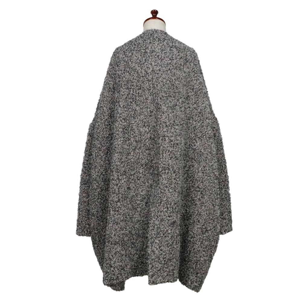 ループ状のニットが使用され、ヴァージンウールとアルパカ、モヘヤの混紡素材で仕立てられています。