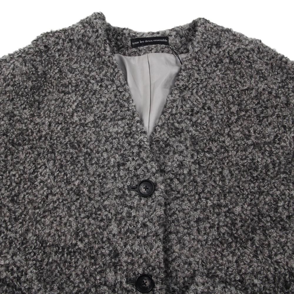 柔らかく温かみのあるノーカラーコート。