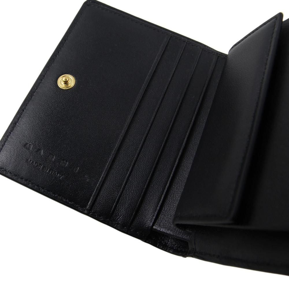 カーフスキン製 Envelope 二つ折りウォレット。 アイコニックなマルニ Trunkaroo のクラスプにインスパイアされた、エナメル加工のディテール。 隠しスナップボタン留め。 コインポケット、紙幣用コンパートメント、カードスロット4つ