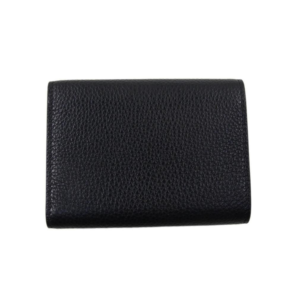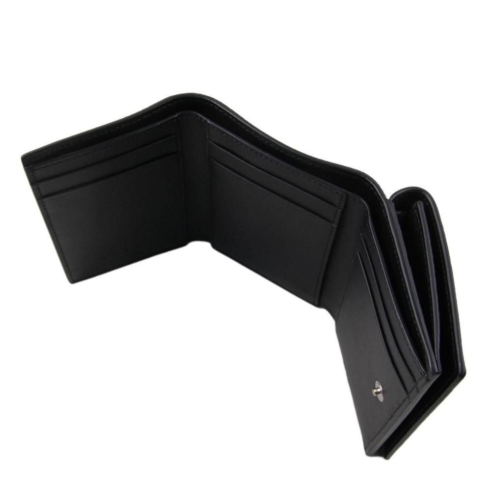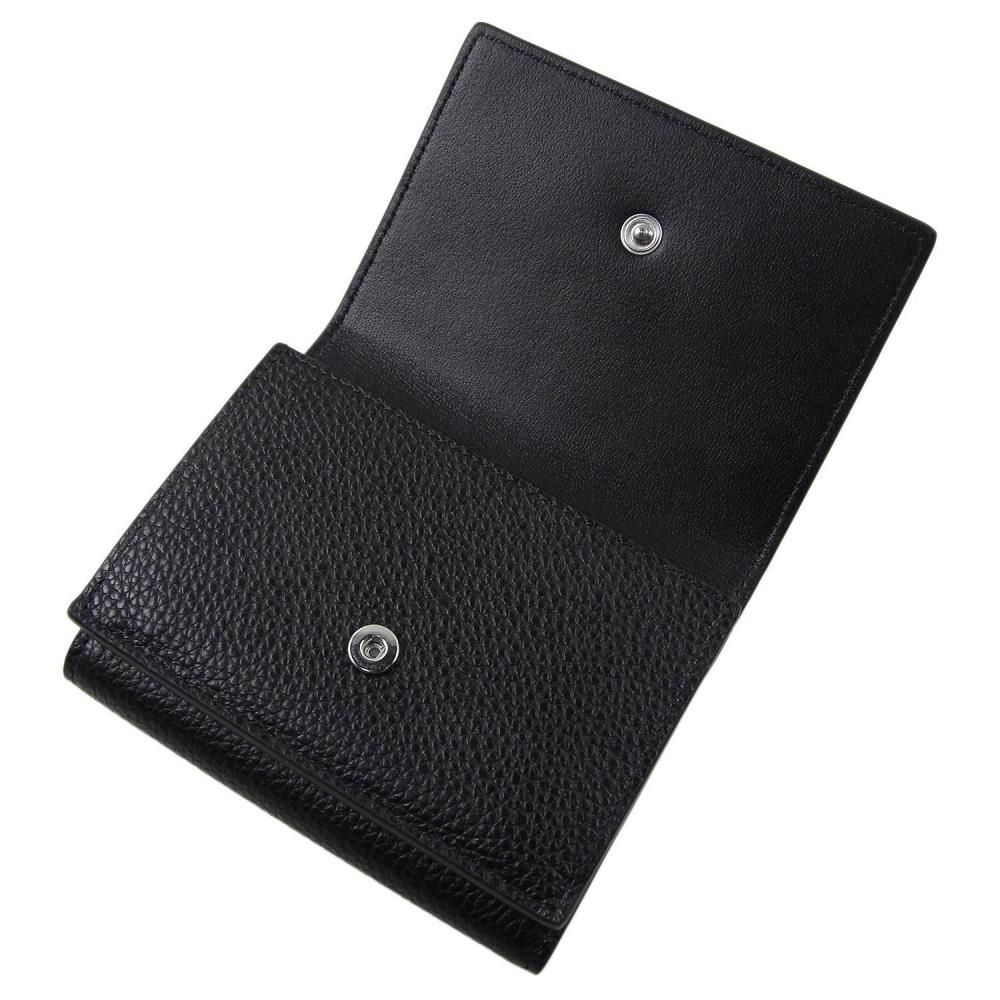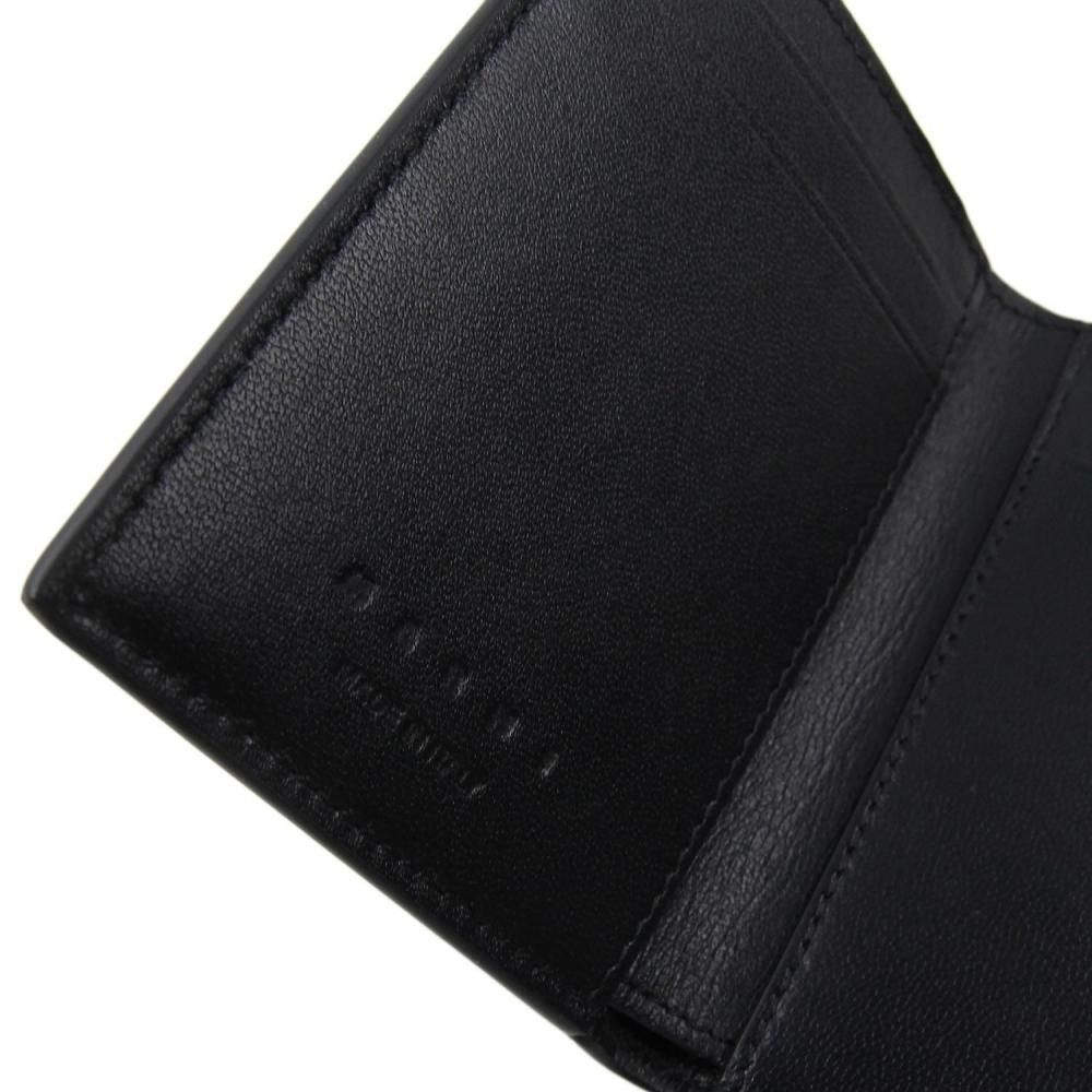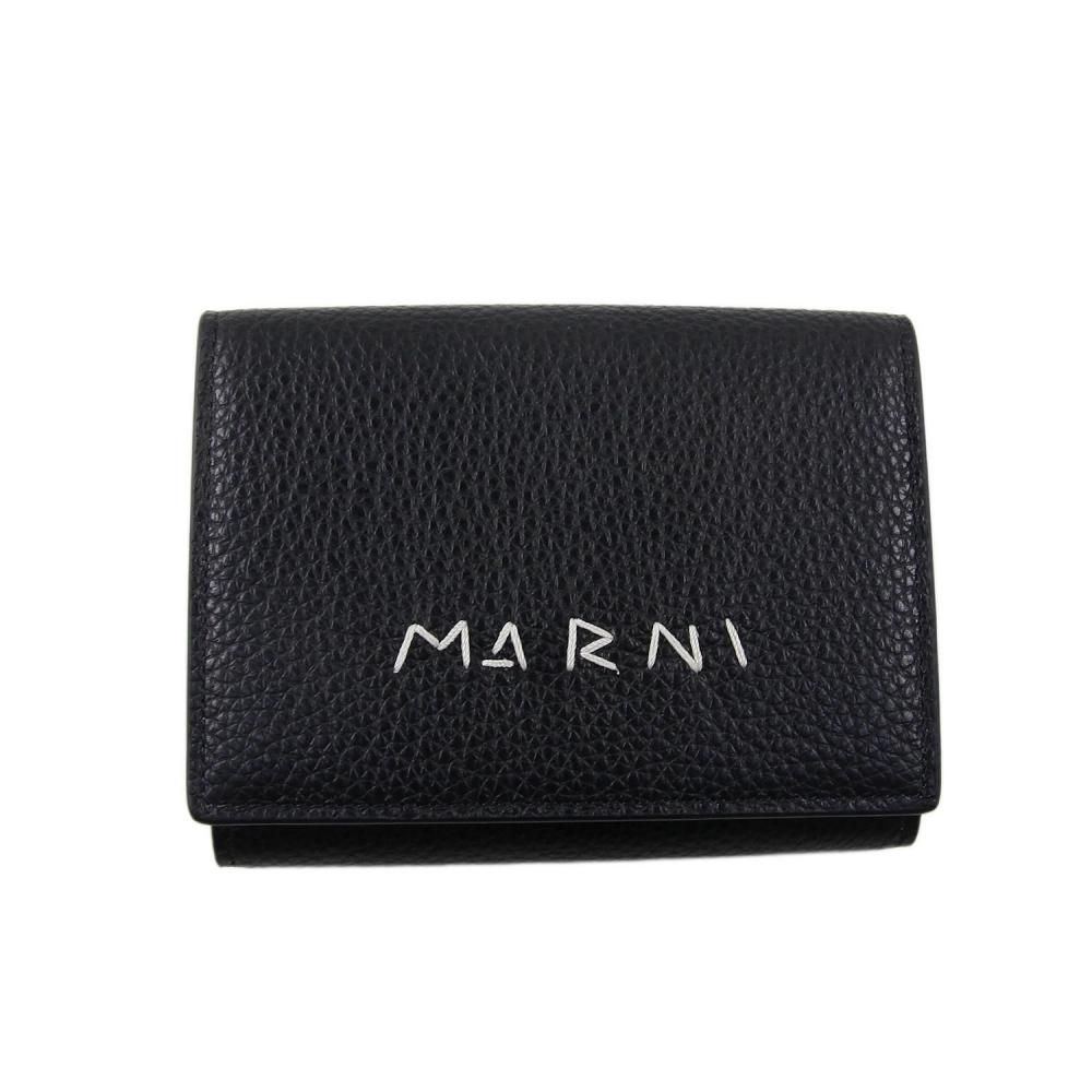 ミルドカーフレザー製三つ折りウォレット。 フロントにハンドステッチのマルニメンディングロゴ。 スナップボタン留め。 スナップボタン式コインポケット、紙幣用コンパートメント、カードスロット6つ。 Made in Italy