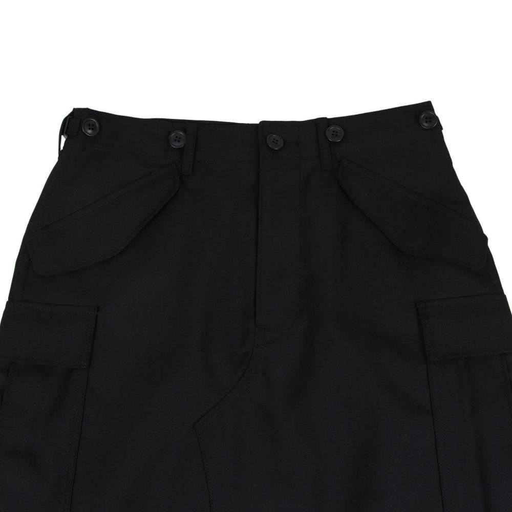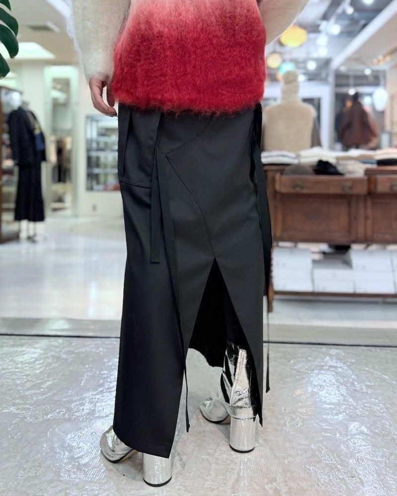 カーゴパンツが裁断されたようなデザインが施されたカジュアルながらもエレガントなデザイン。