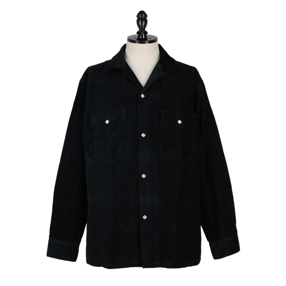 横方向畝のコーデュロイ生地で仕上げたオープンカラーシャツ。