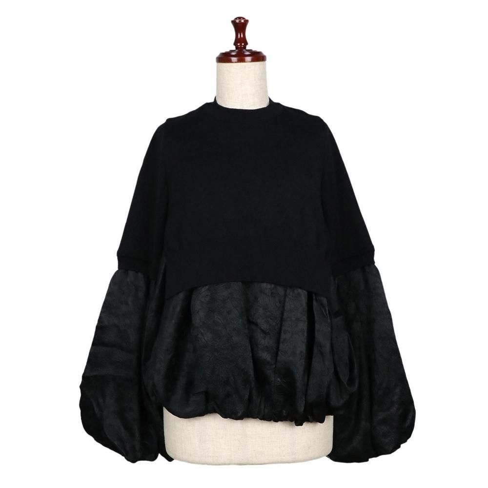 光沢感のある植物柄のジャガード生地とクロップド丈のニットをレイヤードした斬新なデザインのニットトップス。