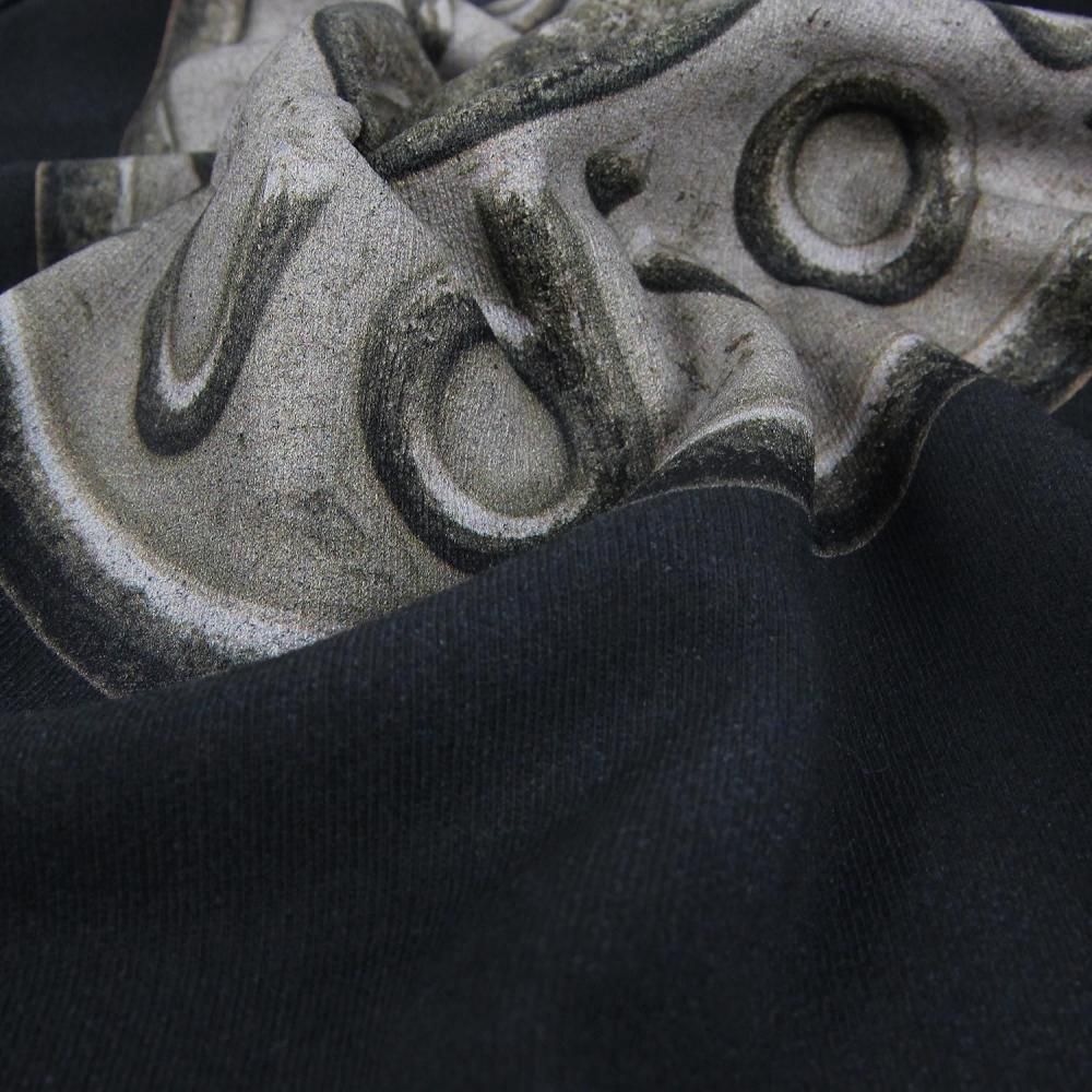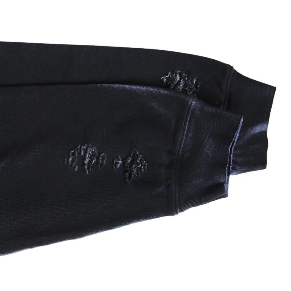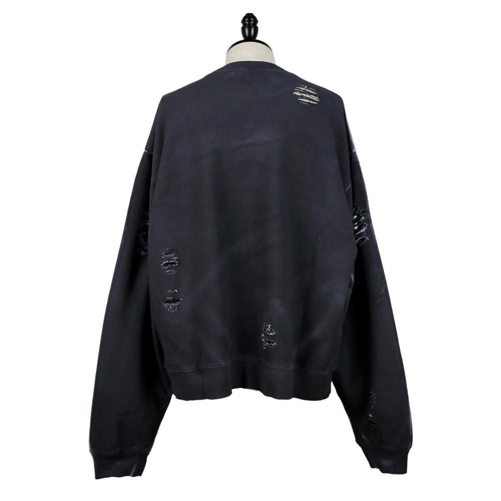 リラックスフィット、腰下丈のスウェット。フロントセンターにコーティング加工のロゴ入り。ダメージ感のあるディテール。ガーメントダイ仕上げを施した中厚フリースコットンを使用。