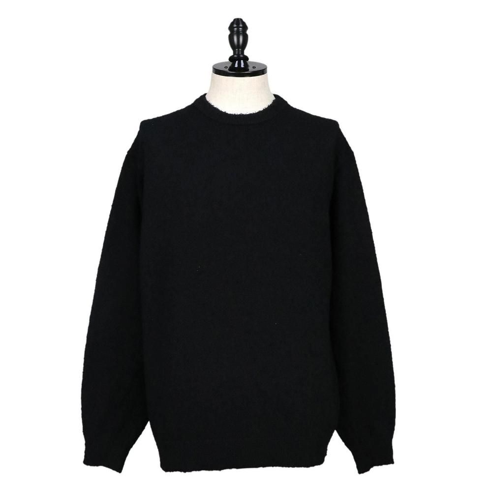 ミドルゲージの天竺で編み立て、程よく抜けたサイジングのクルーネックニットです。