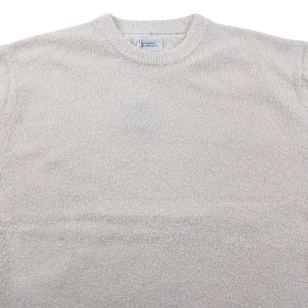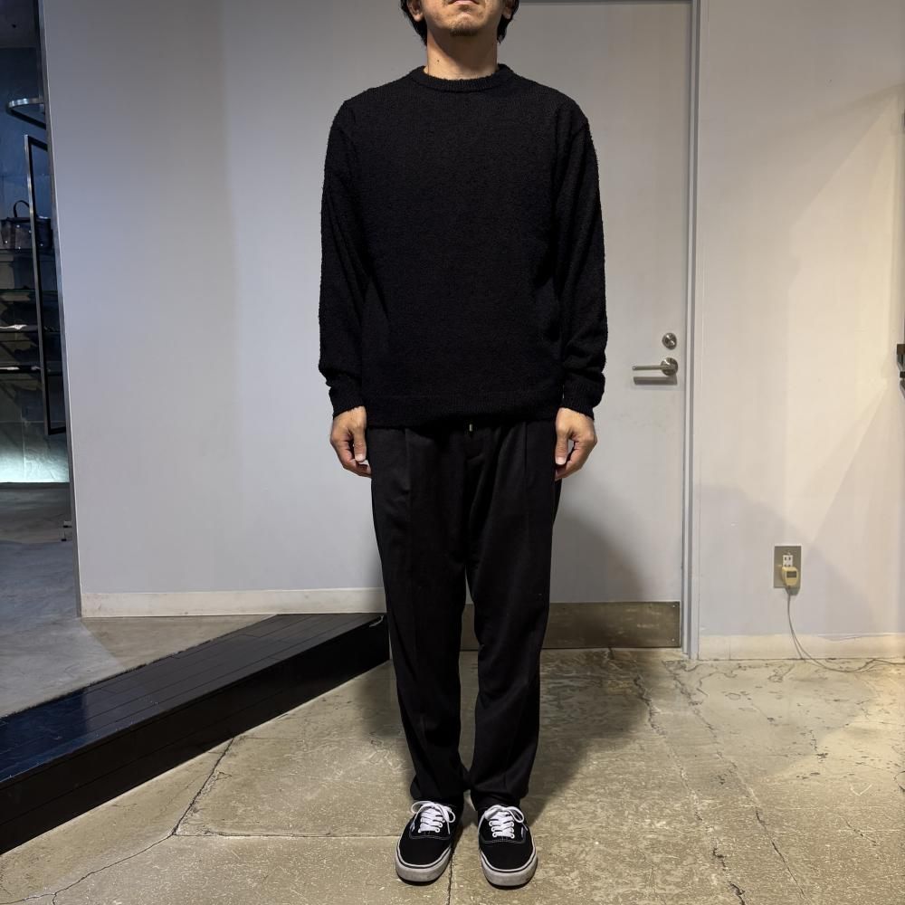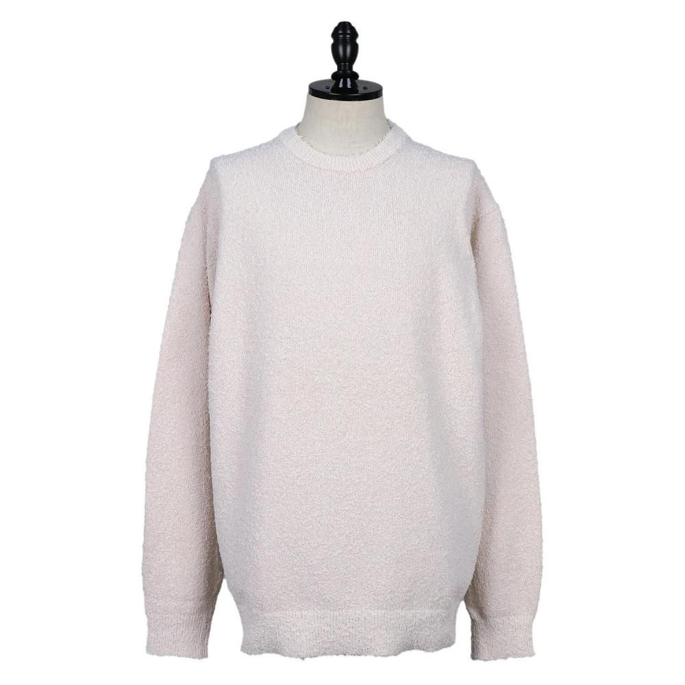 ミドルゲージの天竺で編み立て、程よく抜けたサイジングのクルーネックニットです。