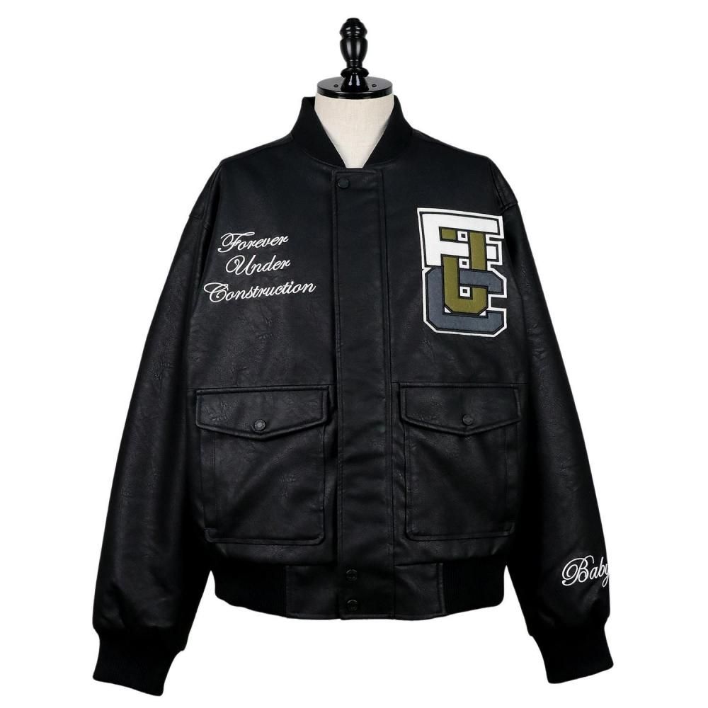 刺繍、ワッペンなどスタジャンデザインとミリタリージャケットのディテールを組み合わせたハイブリッドな一着に。